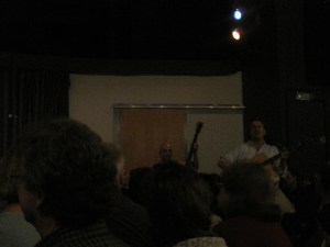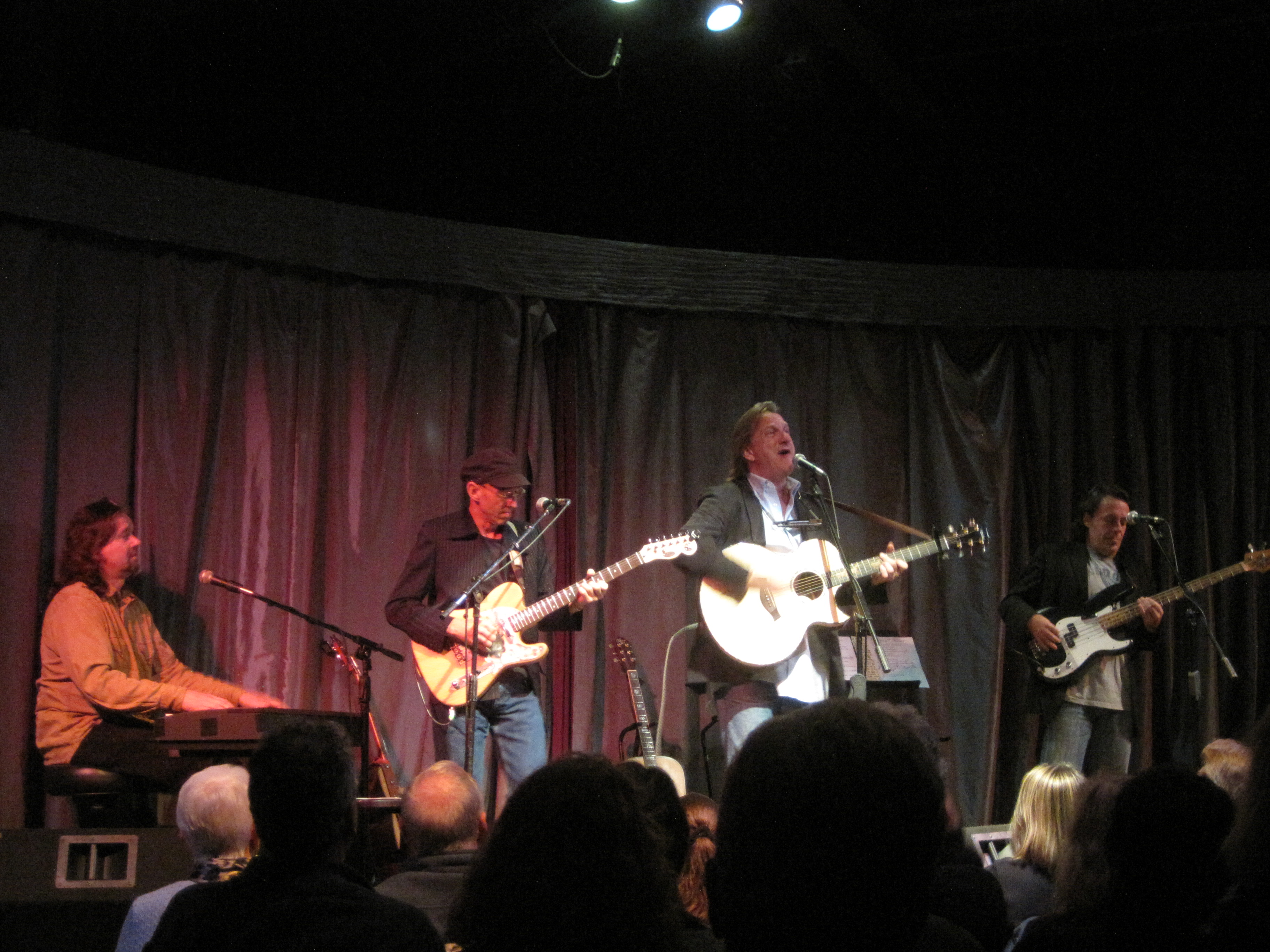 One Longfellow was quite full that night, but up until then, we’d been a very quiet, attentive audience. Roy broke the ice. He is self-deprecating and funny. We laughed a lot. Bernie nearly poked Roy in the eye with his banjo (the band really squeezes in around a single mic) and Roy joked that he was sorry if he “sprayed head blood all over” us, and that he tries to “say head blood once a show.” We chuckled. It was appreciated humor.