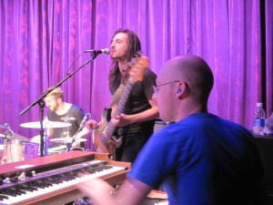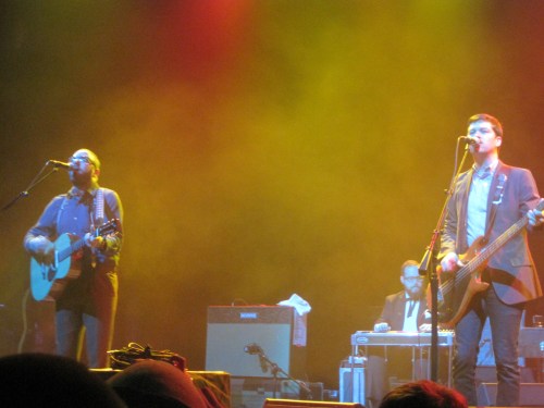 They invited Kelli Schaefer to join them for a song. Drew informed us that she and their drummer, Jeremiah Hayden, had gotten married a couple of weeks earlier and that this was their “Honeymoon Tour.” She had a fantastic voice. Drew acknowledged again that “opening acts are what you wait through” and thanked us profusely for being so kind and for making them feel at home even though they were so far from home. They closed with another gospel tune called “It All Comes Right” that you can download for free on their Bandcamp site. Josiah from The Head and the Heart came out to play tambourine with them on that last song (there were a lot of tambourine guest spots that night), and I liked the refrain, “I’m coming home to you.” It was a message appropriate for the end of a set.
