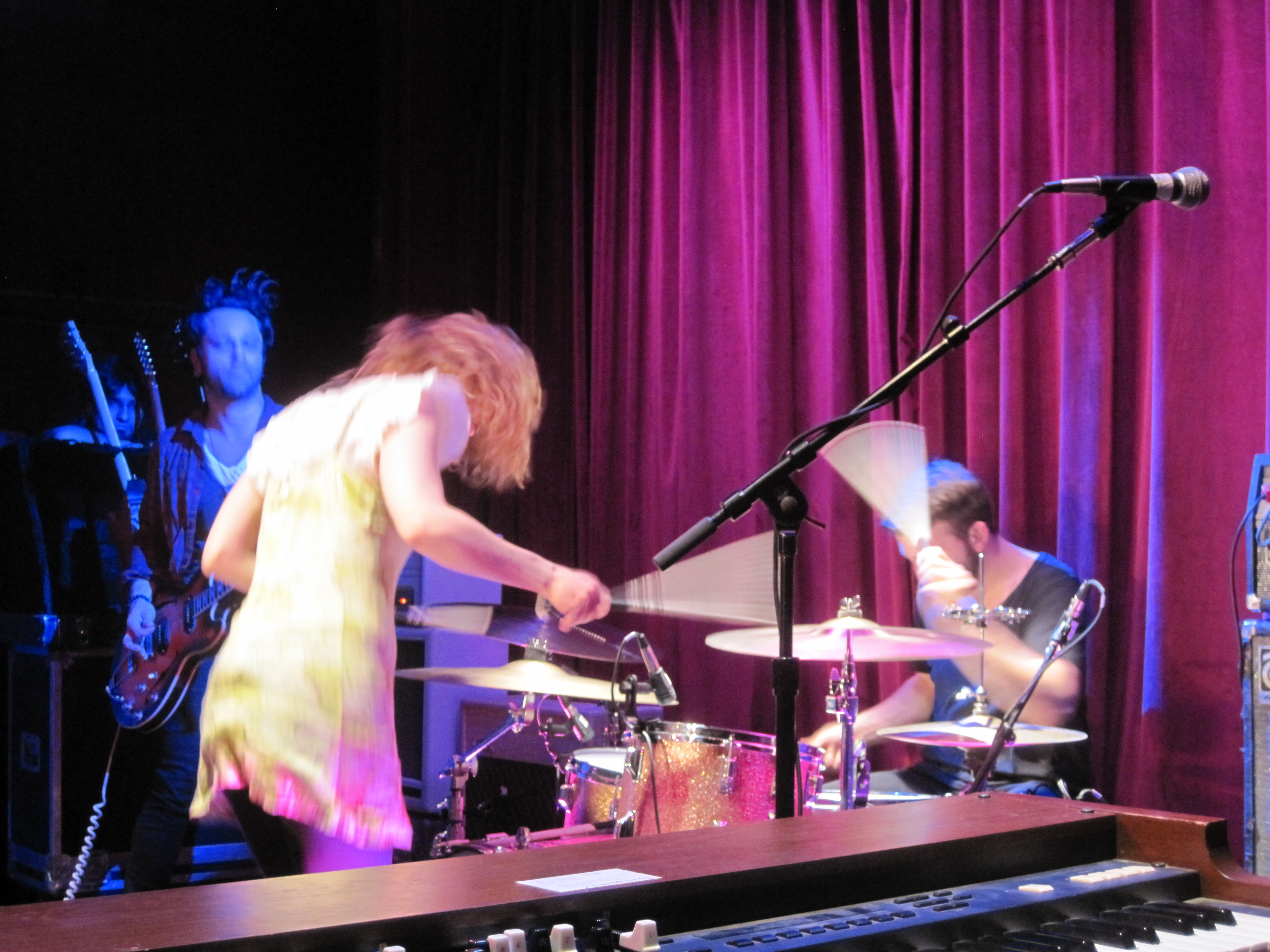 Drew Grow & The Pastors’ Wives took the stage next. I really wanted to fall in love with them because Drew was so sweet. I liked their music fine, but I wasn’t so moved that I wanted to buy their album after the show. Drew said they were from the “other Portland” and they respected that we were there to see The Head and the Heart and they really, really appreciated our willingness to listen. He said all the right things. I’ve been going to shows lately where performers haven’t said much on stage, so I appreciated his friendly banter. He’s doing that part right, for sure. Drew played guitar, a bassist (Kris) also played upright bass, there was a drummer (Jeremiah), and a young Elton John look-a-like (Seth Schaper) played guitar and keys. I enjoyed his silk shirt, round sunglasses, and top hat. He and the drummer had come out to play tambourine with Black Girls. Now I knew who they were. I loved the harmonies that Drew and bassist Kris Doty created. Their music had a decidedly gospel feel. I think I would have liked them more if I’d heard them unplugged. This video of “Bon Voyage Hymn,” is great, and it shows the power and certitude with which the group performed. They also had stage presence—not only was Drew social, but the group interacted with each other while they played, and the drummer jumped up on a speaker during one of the songs and rocked out on tambourine. They have showmanship, for sure, and I appreciate that.