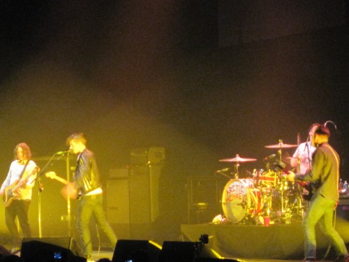 Finding parking in Portland at 7:30 on a Friday night turned out to be quite a challenge despite my legendary “parking karma,” so we got to the State Theatre a song or two into the first opening act’s set. I am really glad I had seen that there were two opening acts so I could mentally prepare for waiting that long to see a band I love so much. I headed straight to the floor to find a spot as close and as center as I could. I found some space in the center about eight rows back from the stage. Michelle met up with our friend Marian who’d injured herself at yoga, and sat with her for a while. Chris and Kay and the other Bree met up with me on the floor. I got to see Mary and Emily, two former students, and Owen and Caroline, two current students. My friends Mike and Kara texted me from the balcony to say hi. I’m lucky to be surrounded by so many people with such great taste in music.