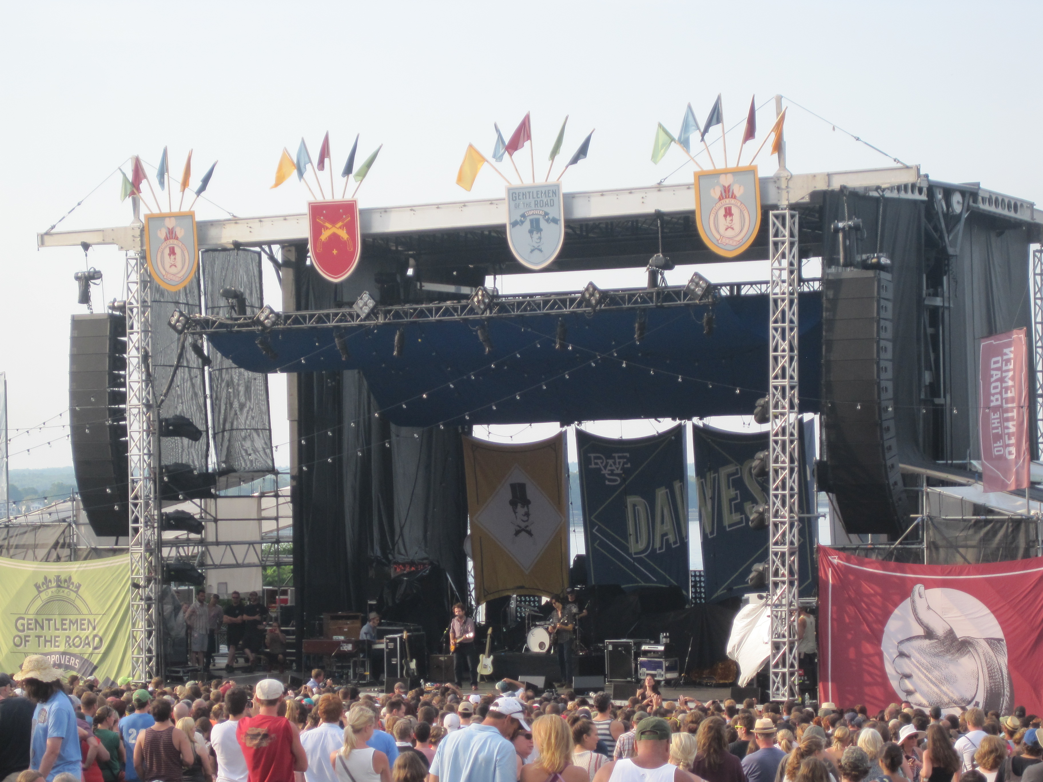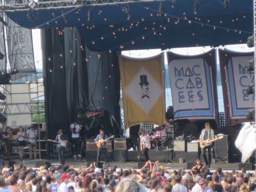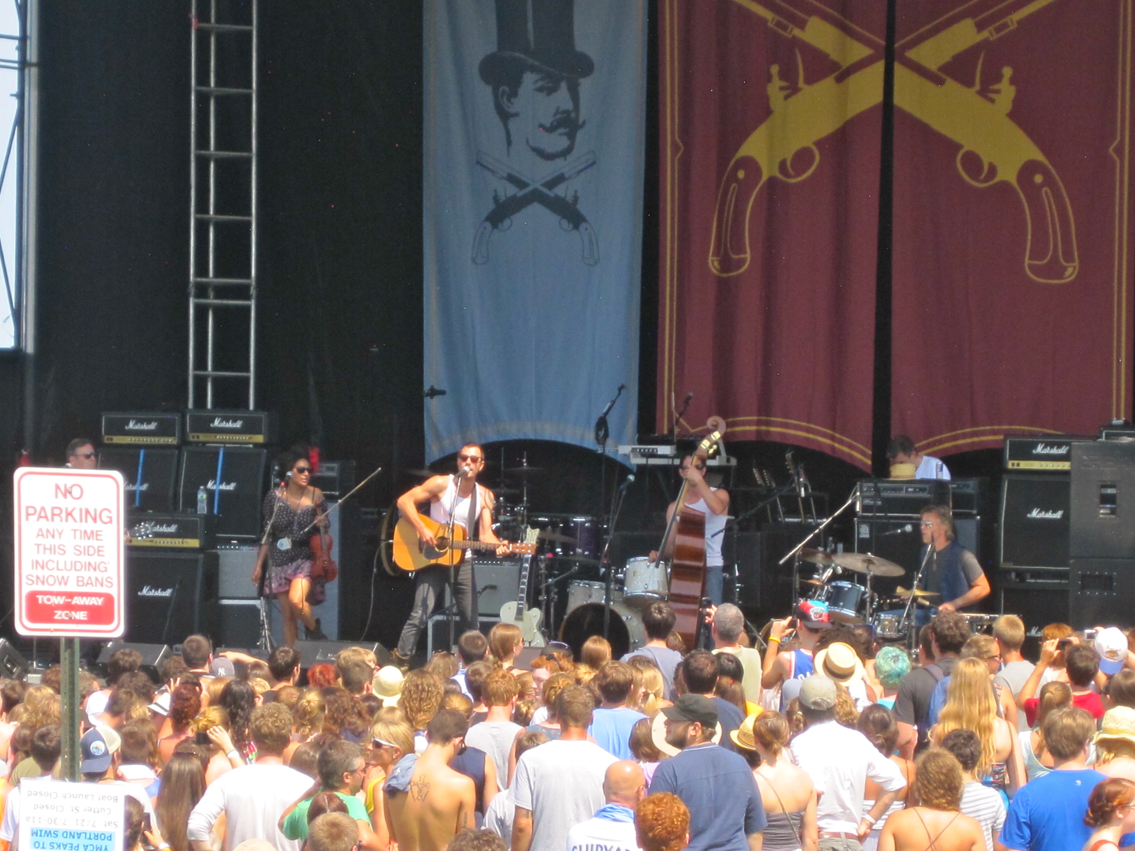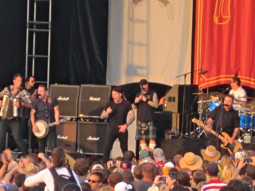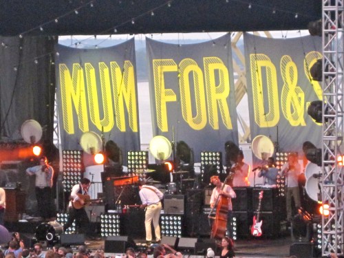 Dropkick Murphys were a late addition to the lineup and came to play a quick set before their show later that night at the State Theatre. I’d seen them live one St. Patrick’s Day years ago in Boston with my Bowdoin friend Lisa and her sisters, Sara and Maria. It was crazy. They are loud and rough and people got excited for them and ran to the stage that they started playing on and bounced for the whole set. They did “Sunshine Highway,” played a new song for us from their album that they’d just wrapped the day before, and were backed by the Parkington Sisters on “Irish Rover.” Even if the Murphys are a bit of a departure from my general musical taste, they know how to put on a lively show, which I appreciate. We needed a boost after the very mellow day of music, actually, and they did a great job. Basically the whole crowd got on their feet for their finale “I’m Shipping Up to Boston,” so we were ready to be up and dancing with Mumford & Sons.