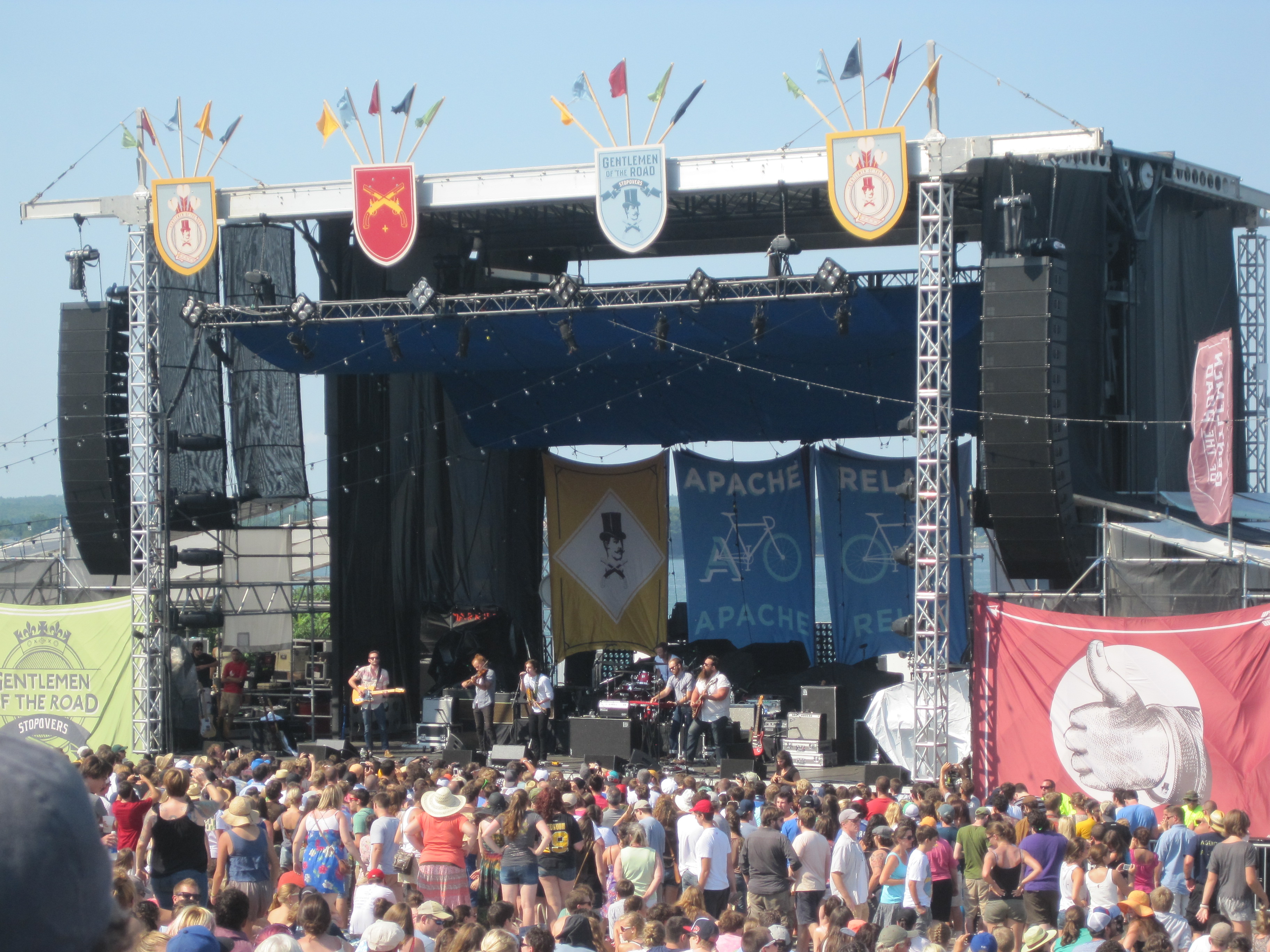 Nashville’s The Apache Relay was up next (the first on the main stage) and I was really excited to see them since I’d been held up in traffic and missed their set at The Newport Folk Festival the weekend before. Of all of the acts that wasn’t M&S, I’m willing to say they were my favorite—and with Dawes, they rounded out my top three acts of the day. I really liked them immediately—they were gracious and warm and the lead singer had a powerful, pleading voice. The keys and strings rounded out their sound and I would see them again (in a smaller venue) for sure.