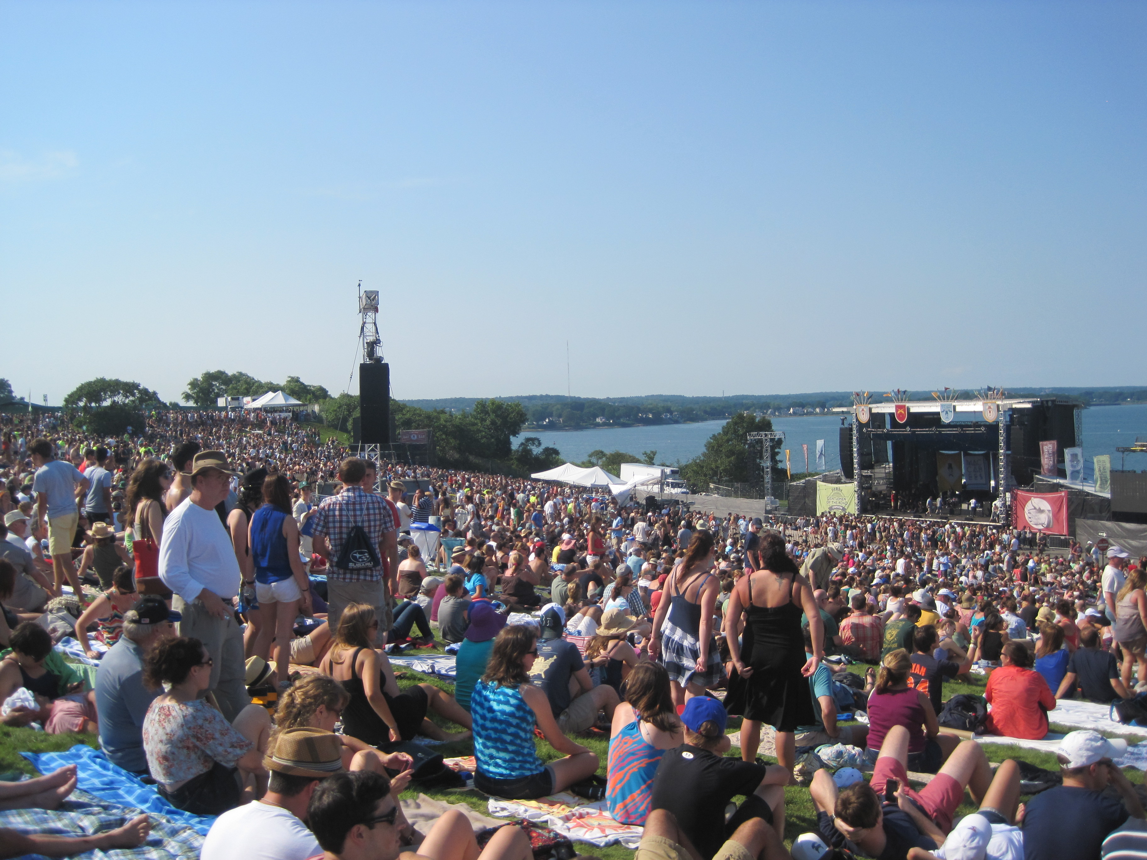 L.A.’s Dawes was popular at Newport Folk Festival and my concert buddy Bob is a big fan. They didn’t do as much for me live as I’d expected they would (and I didn’t dare tell Bob that), but I was far away which is so not my thing. I really like their 2009 North Hills album, though, and will definitely see them someday from up close in a smaller venue. They opened with “If I Wanted Someone”—a song I really like, and did “Fire Away.” I’d call their sound Americana—compatible with Wilco and My Morning Jacket. They played one of my favorites “When My Time Comes” and dedicated it to “the newbies.” We happily sang along with them on the chorus—belting it out, really—and even did the chorus without their help a couple of times through. That’s when I started to realize how many more people had showed up for the festival. We were starting to be quite a crowd. By then my friends Marian and Alex had joined us and Chris (check out his photos from the day at BostonThroughMyEyes.com) had checked in with us a few times to chat and take a break from taking photos. Dawes did a nice rendition of “Peace In The Valley” and ended with “Time Spent In Los Angeles.” Wylie Gelber from Dawes did a cute write up of the event for The Travel Channel.