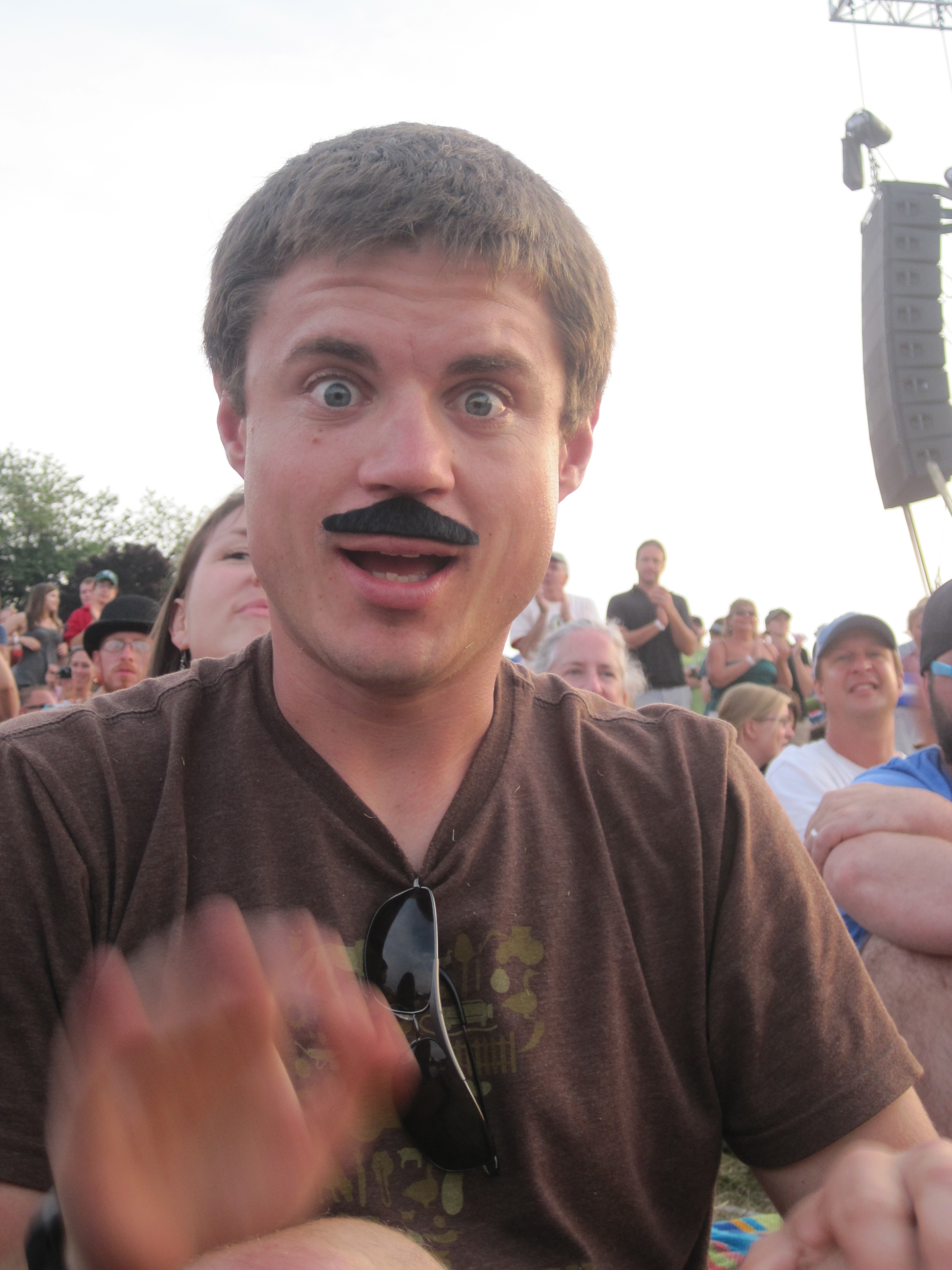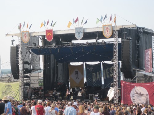 Clare lives in Gardiner, too, so I picked her up at 10:30 Saturday morning in hopes of getting to Portland’s East End around 11:15 to try to get a parking spot. We had absolutely no trouble finding parking, and were at the gates at 11:30 for the noon gate opening. I talked to my concert buddy Monica the night before about how frustrating it was that there was no concrete information about who would play what stage at what time since many of us want to plan when to arrive and where to find a spot. That information was never available, it seems, including the day of the show and after the festival began. Festival staff manned the many entrance gates, checked IDs to give out beer tent bracelets, gave us stick-on moustaches to keep us in theme, but no one seemed to know the schedule for the day.