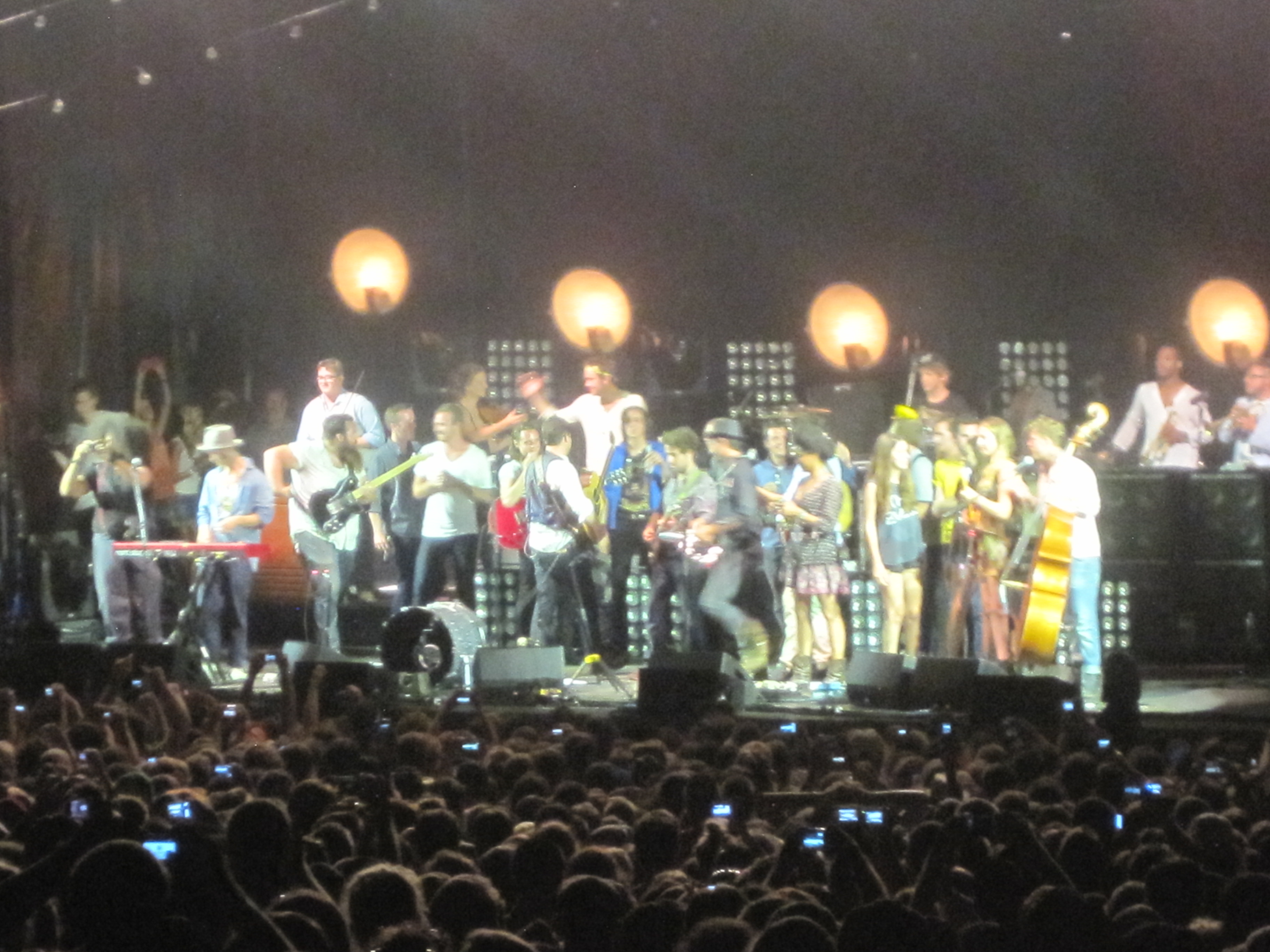 We didn’t want them to go just yet, and M&S obliged with an encore. They were so complimentary of Portland and Maine and were obviously so grateful for the whole experience. I was really pleased with how kind they were to us. A few lucky local residents were REALLY pleased, actually! They played “Winter Winds” and people got excited when they started playing the opening notes of “The Cave,” which sounded GREAT. After another round of thanking us profusely for being a great first stopover on their brief American tour, they invited all of the musicians from the day out on stage to cover “The Weight” by The Band. It was quite a sight to behold, and we all sang along. The night ended with a round of fireworks before we were all off on our merry way. I really, really hope to see Mumford & Sons again from up close someday! When I saw them on SNL last night, my first thought was, “Oh! That’s what they look like!” I loved their set, though, and they deserve finding their way onto your iPod if you’re one of the few left who hasn’t discovered them yet.