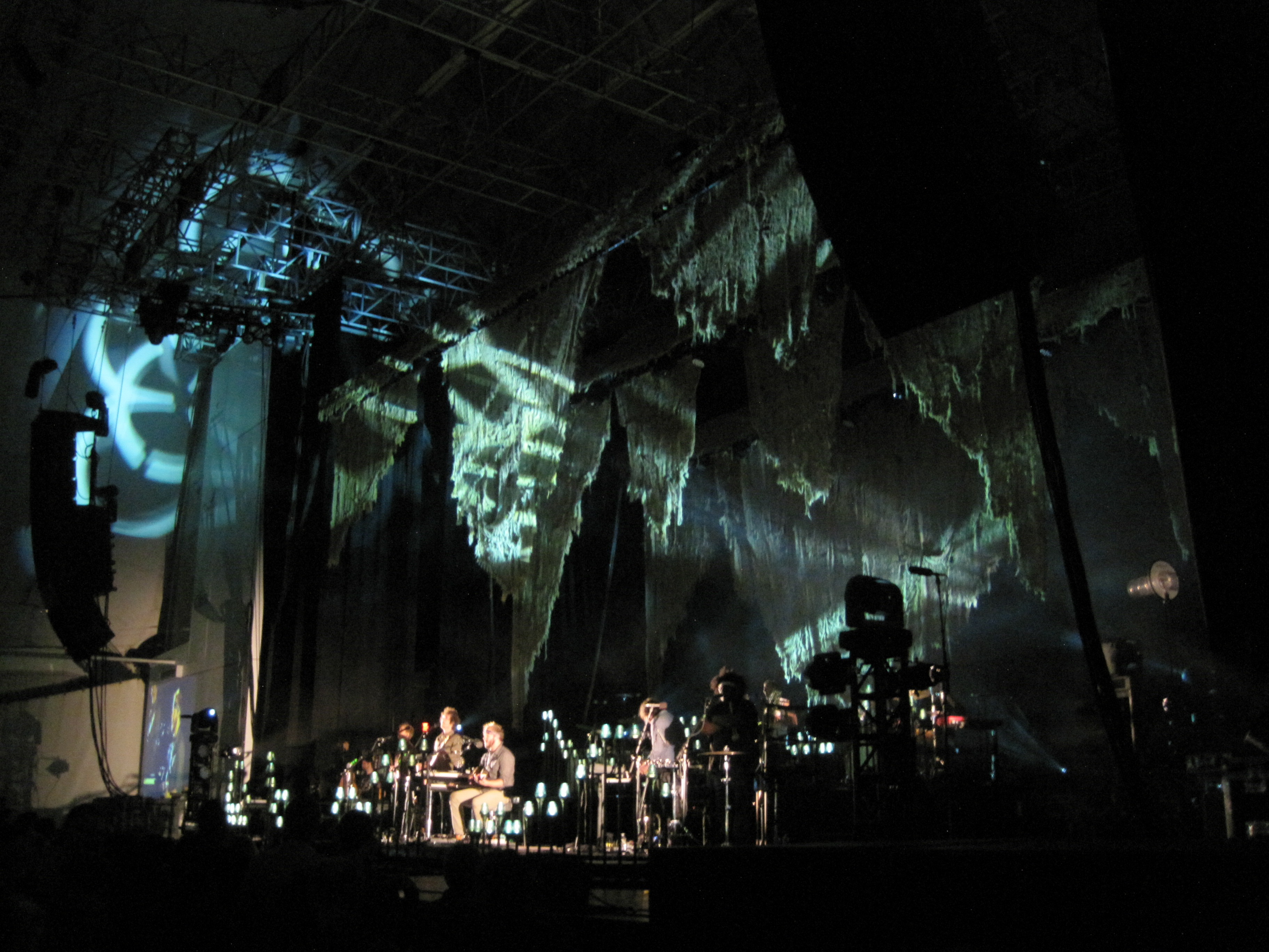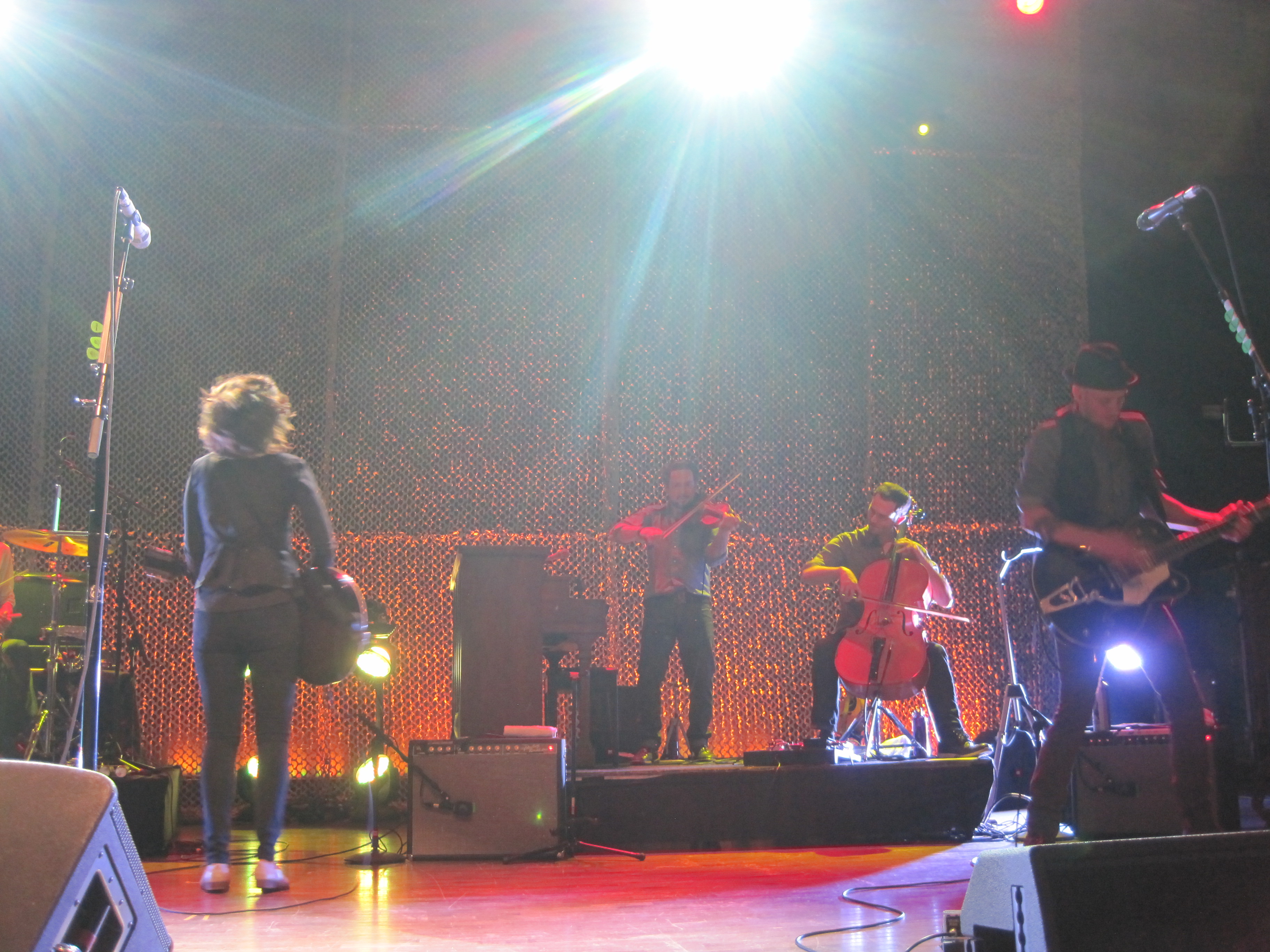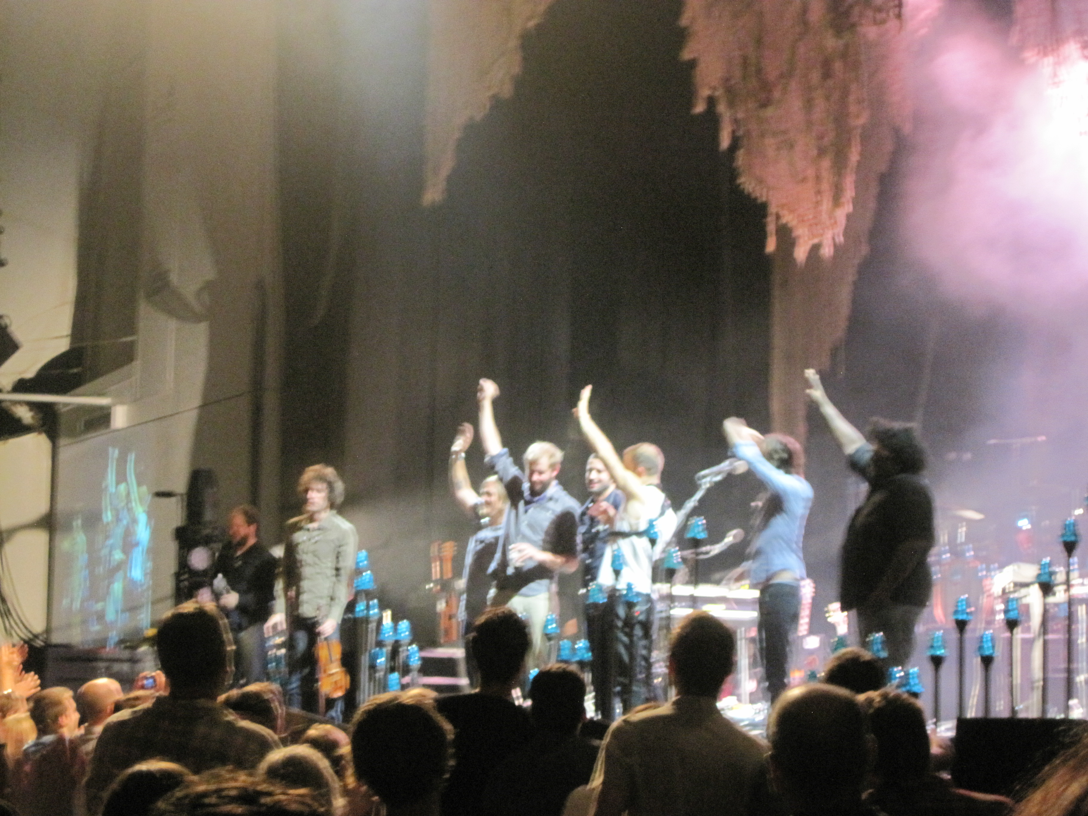 My fears were gone when I got inside, though. It seemed pretty empty on the floor. Were people there early to ensure good balcony seats? I can’t imagine, but there was plenty of room on the floor. I found a spot in the center behind two women. I met a group of fantastic young women, one of whom lives in Gardiner—small world—and we chatted for a long time. One of them was a huge Blitzen Trapper fan, so I encouraged her to write them a love note and lent her my pen. (They got the note later, by the way).