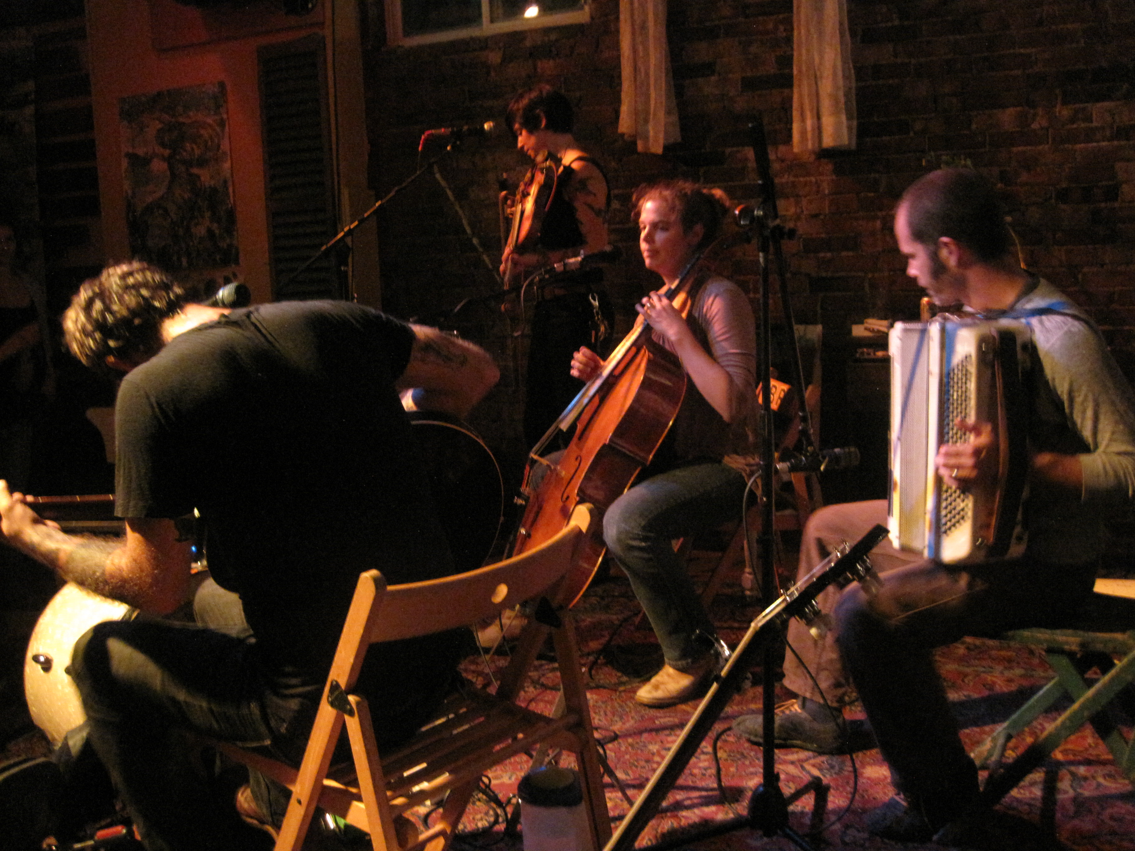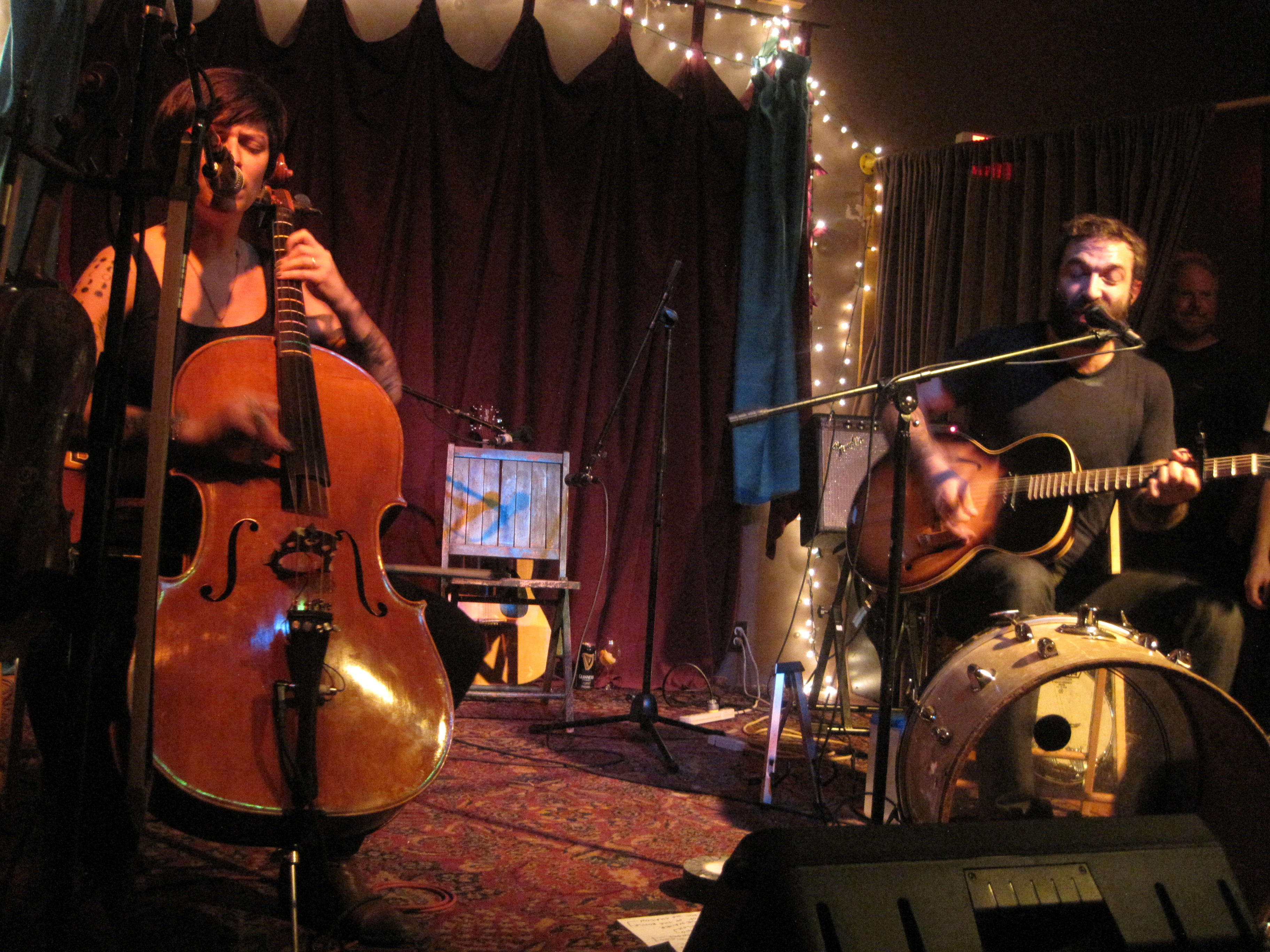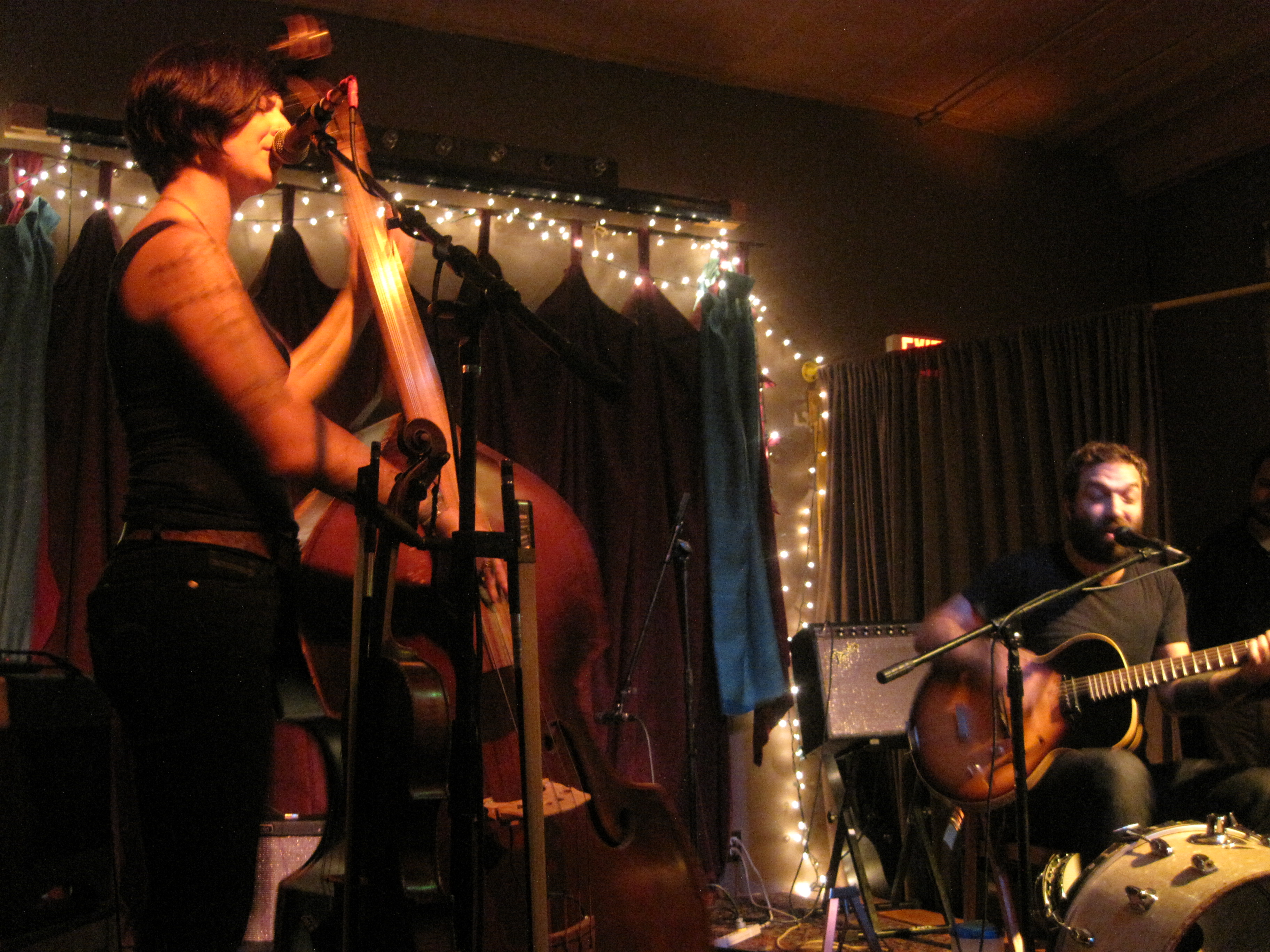 My fears were gone when I got inside, though. It seemed pretty empty on the floor. Were people there early to ensure good balcony seats? I can’t imagine, but there was plenty of room on the floor. I found a spot in the center behind two women. I met a group of fantastic young women, one of whom lives in Gardiner—small world—and we chatted for a long time. One of them was a huge Blitzen Trapper fan, so I encouraged her to write them a love note and lent her my pen. (They got the note later, by the way).