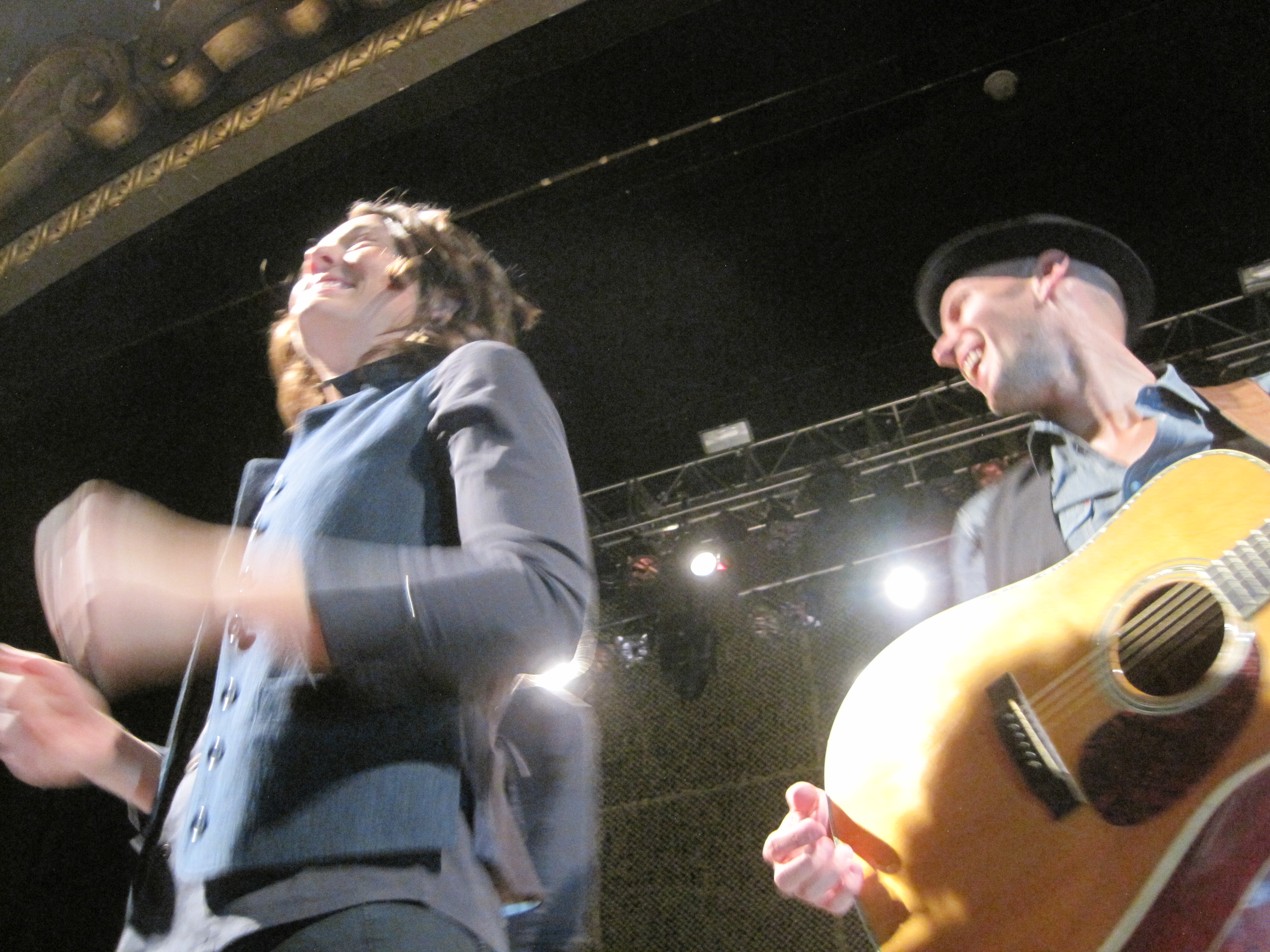 Friends asked if I wanted to join them for dinner before the show and I said no. I knew I’d need to get to the State early to earn my spot front and center. I was honestly a bit drained from having gone to see Bully on a field trip with my whole school earlier in the day. My face hurt from crying (I recommend that you see it, though), and I was hoping to rebound for the show. I couldn’t find a parking spot for a while, and by the time I got my ticket at will call, the line for the show wrapped around the block. I was so bummed. A lovely woman, Annie, from Martha’s Vineyard, who was bringing two sweet little boys, Forest and Jack, to the show, distracted me. I suggested they try for a balcony seat so that the boys would have a good view of the stage. I hope they found a good spot and enjoyed the show.