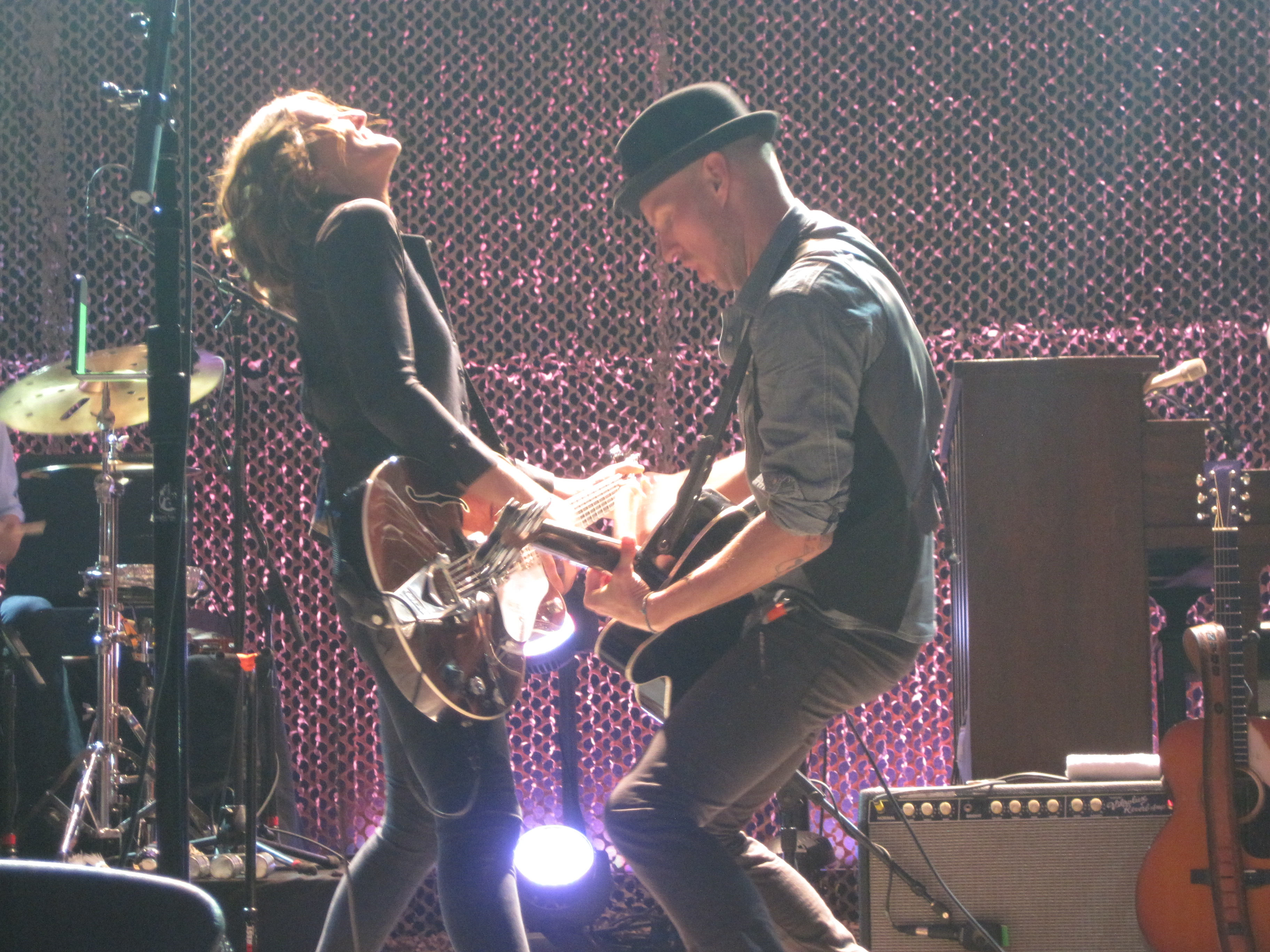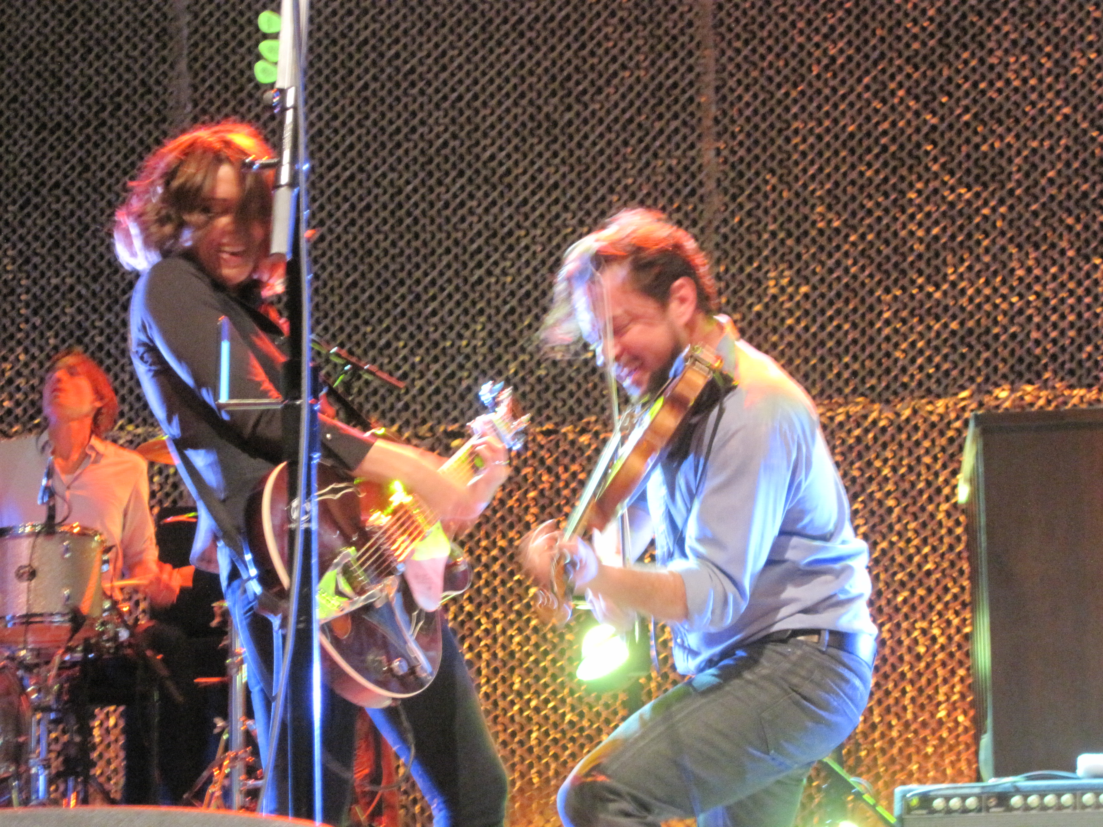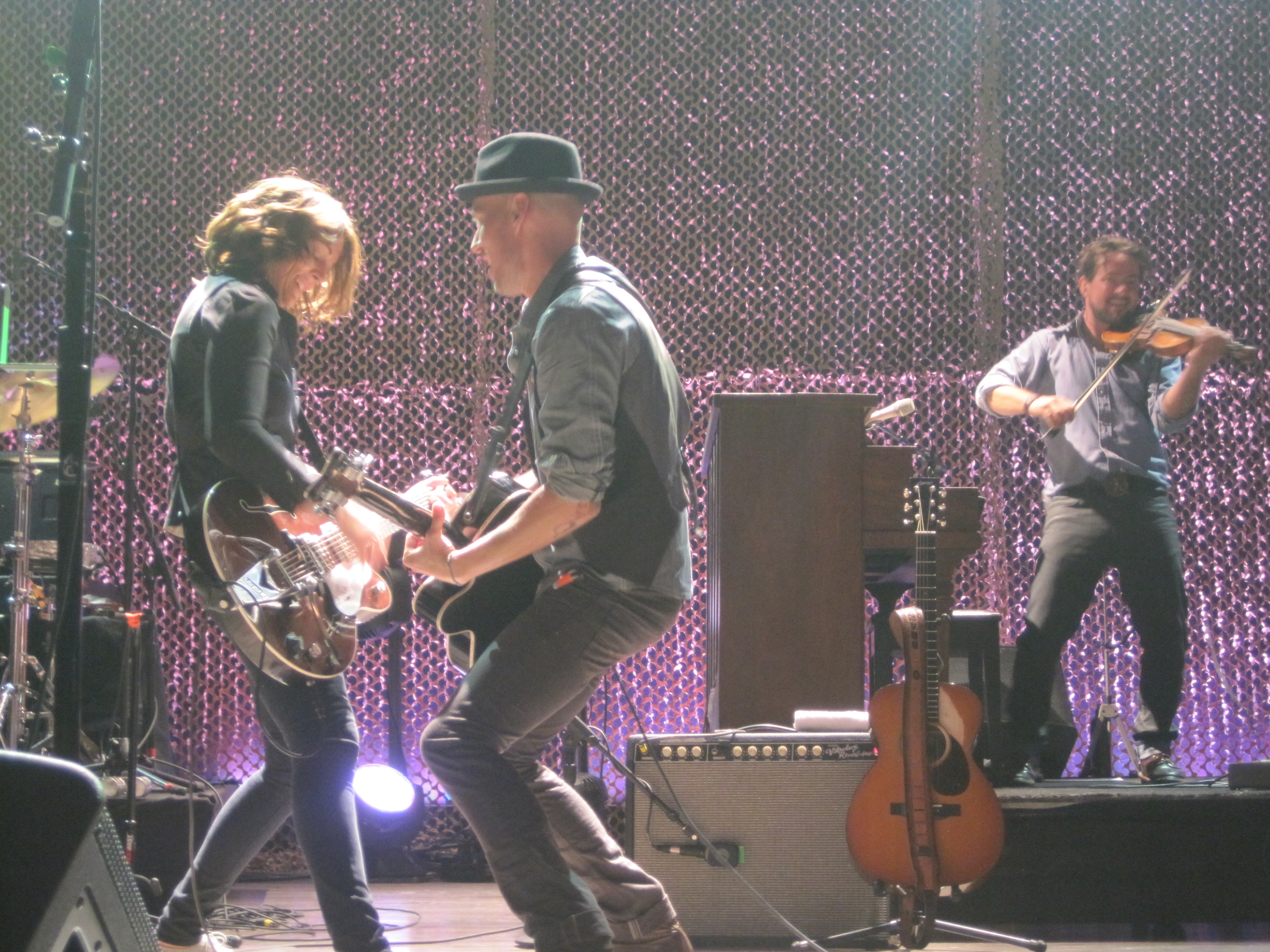 There was a shift in the crowd and I found myself standing next to the woman who’d been in front of me—so just behind one very short woman. What luck! An unobstructed view of the stage! I couldn’t believe it! Heather’s mom had gone to sit down, so there was room for me. It was her birthday present from her mom and she was a super concert buddy. This night was magical, and it had something to do with my surroundings. It’s been a long time since I was surrounded by such consistently lovely people at a show. The woman in front of me in the front row had arrived at 4:30. I’d gotten there significantly later, so was tickled about my luck. I believe in concert karma, and have since paid this forward. One of the crew members came up to us to let us know that Brandi and the guys would use the little platform we were standing at later in the show. We were pumped.