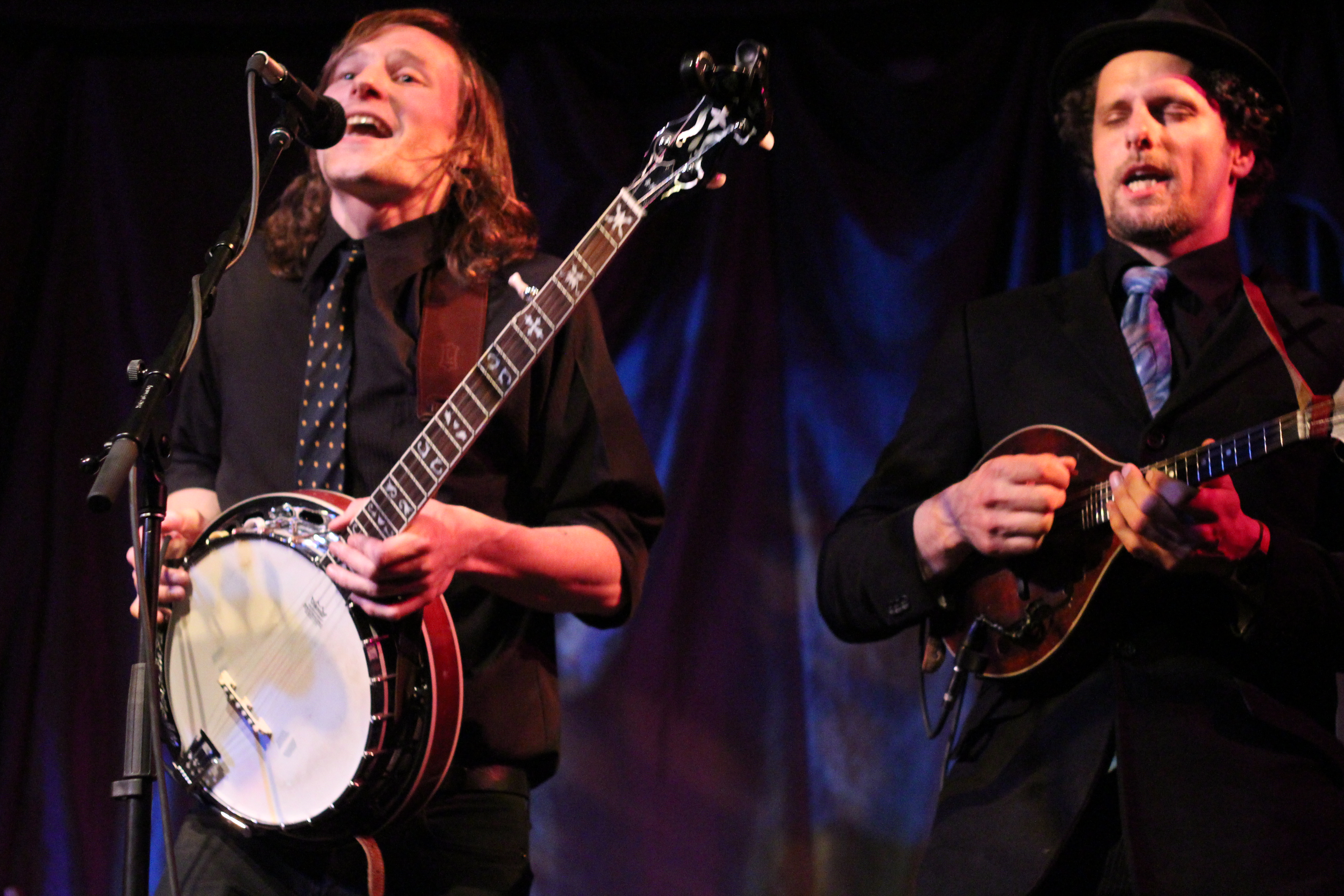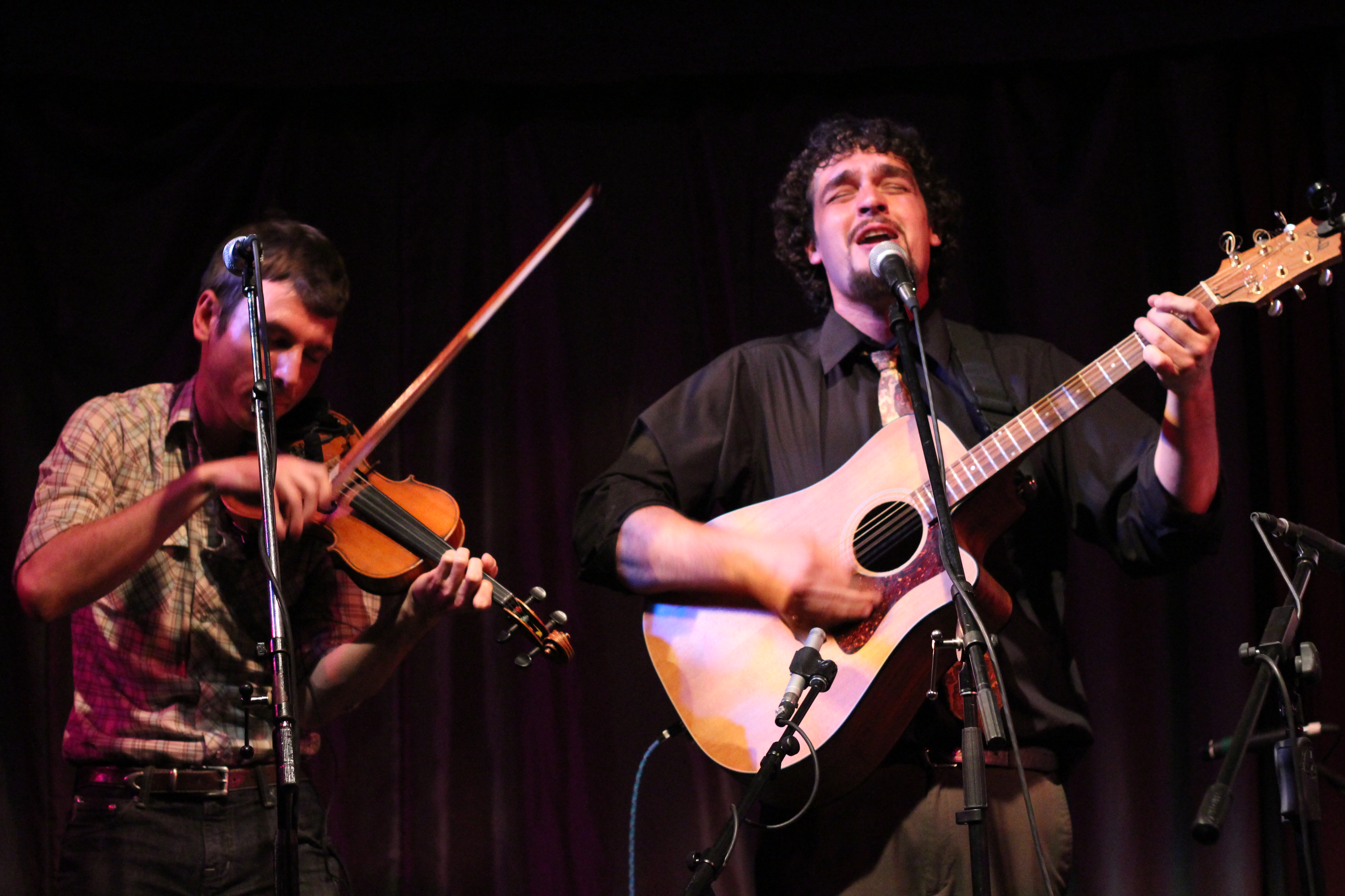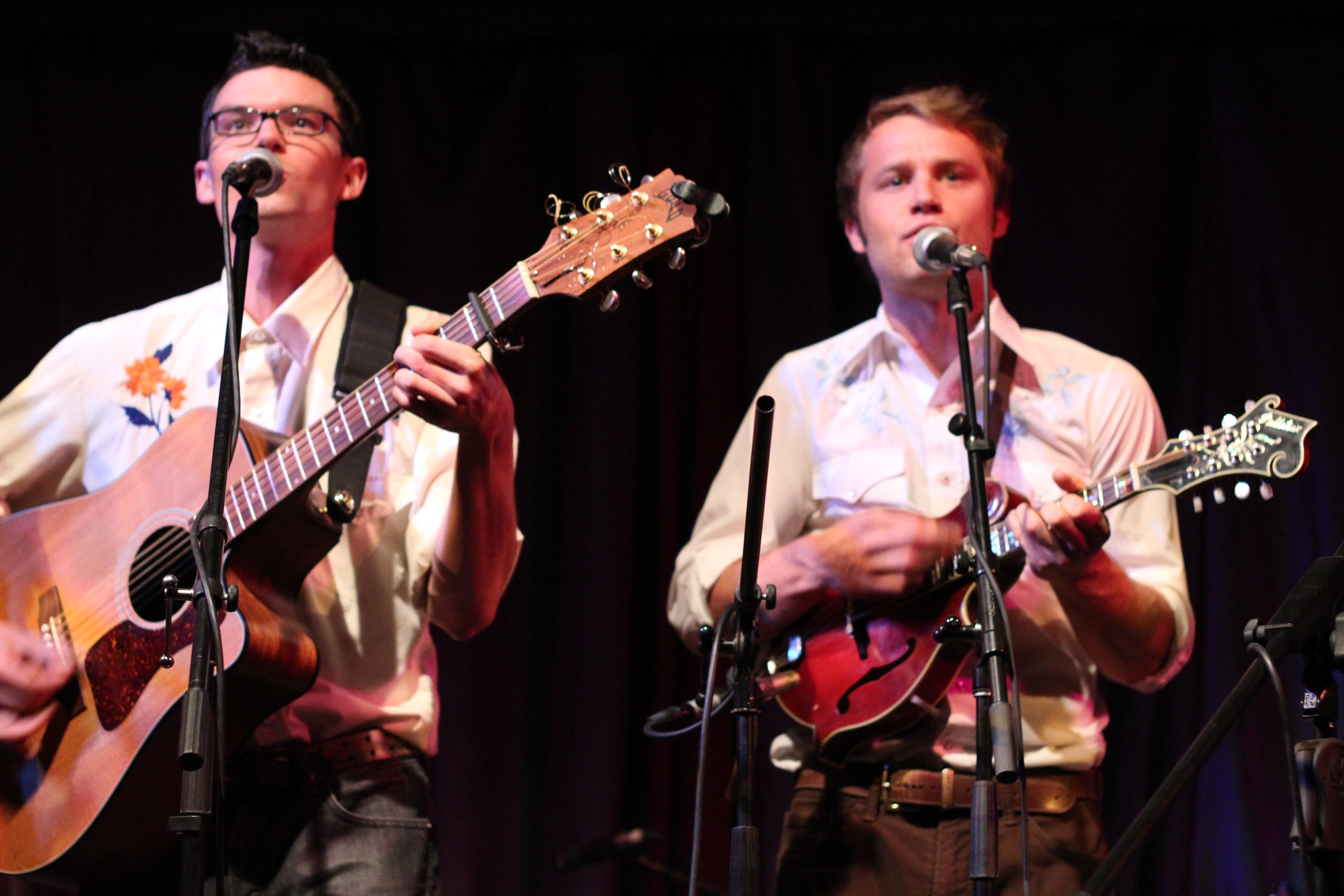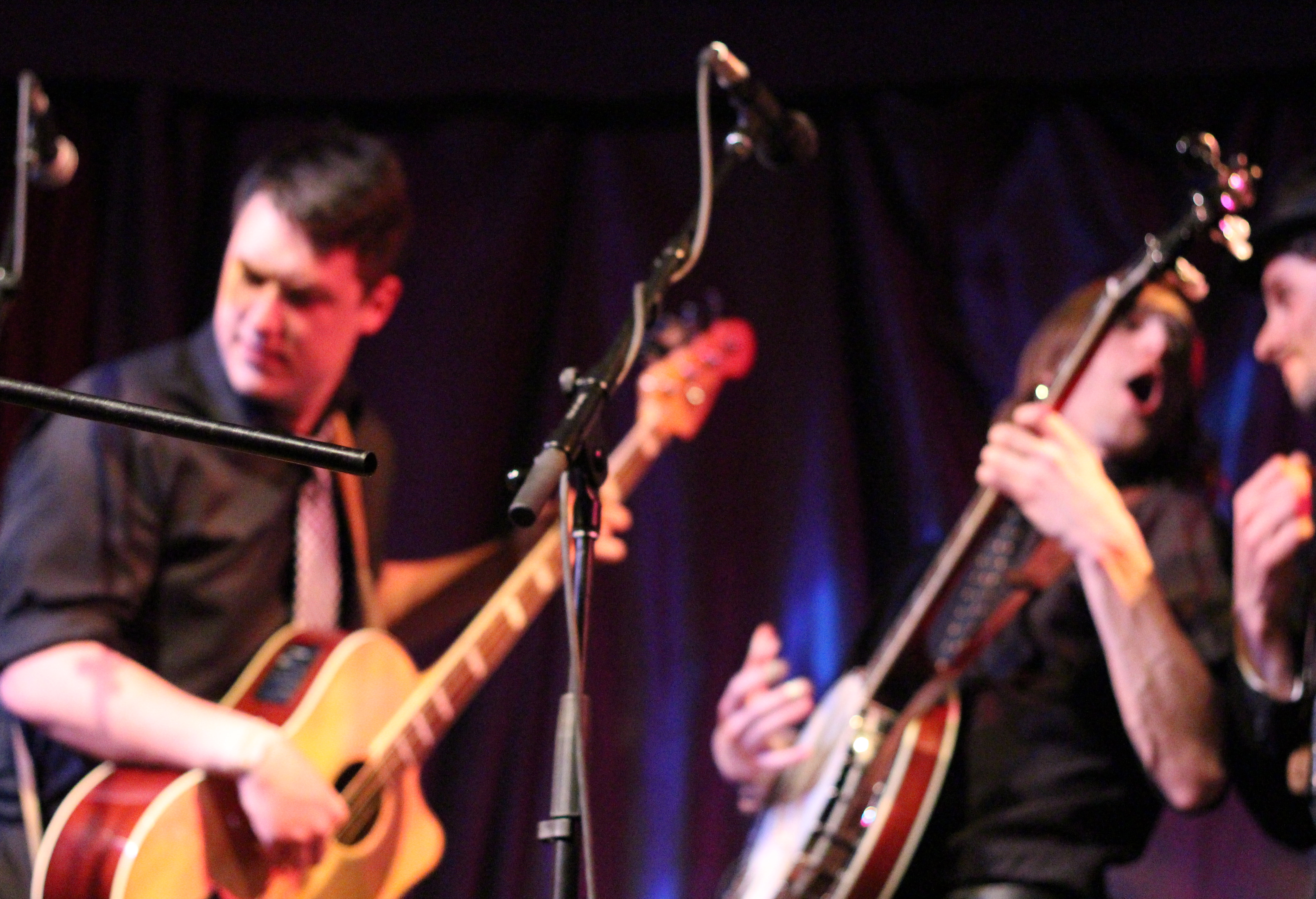 Portland’s Tricky Britches took the stage and thanked us for coming out to their sold out CD release for their new album, Good Company. I’d seen Tricky Britches play with Darlingside last fall, and theirs was one of my favorite shows of 2012. Check out my post from that show. Longtime friends and band mates, the guys of Tricky Britches are very comfortable with each other and are cohesive and well rehearsed. They alternated between original songs, mountain songs, and covers. I liked “Leave My Troubles Behind,” their cover of Vince Gill’s “One More Last Chance,” and “By My Side.” Their friend Rich joined them on banjo for “Fish in the Sea.” Seth and Jed joked about their “wardrobe malfunction”—they’d both worn western shirts with flowers embroidered on them. They thanked their Kickstarter campaign supporters for their help getting the new album out. I liked Bear’s sweet “Sugarcane,” including the lines, “She’s my fire on a cold, cold night/She’s my summer shade.” They wrapped their set with a couple of Appalachian dance tunes that included some super rhythmic stomping. The crowd was amped and clapped heartily in unison for an encore. The guys obliged with “Cumberland Fair,” a song about running into your ex lover at the fairground. Tricky Britches has a loyal local following and you should definitely check out their high-energy live show.