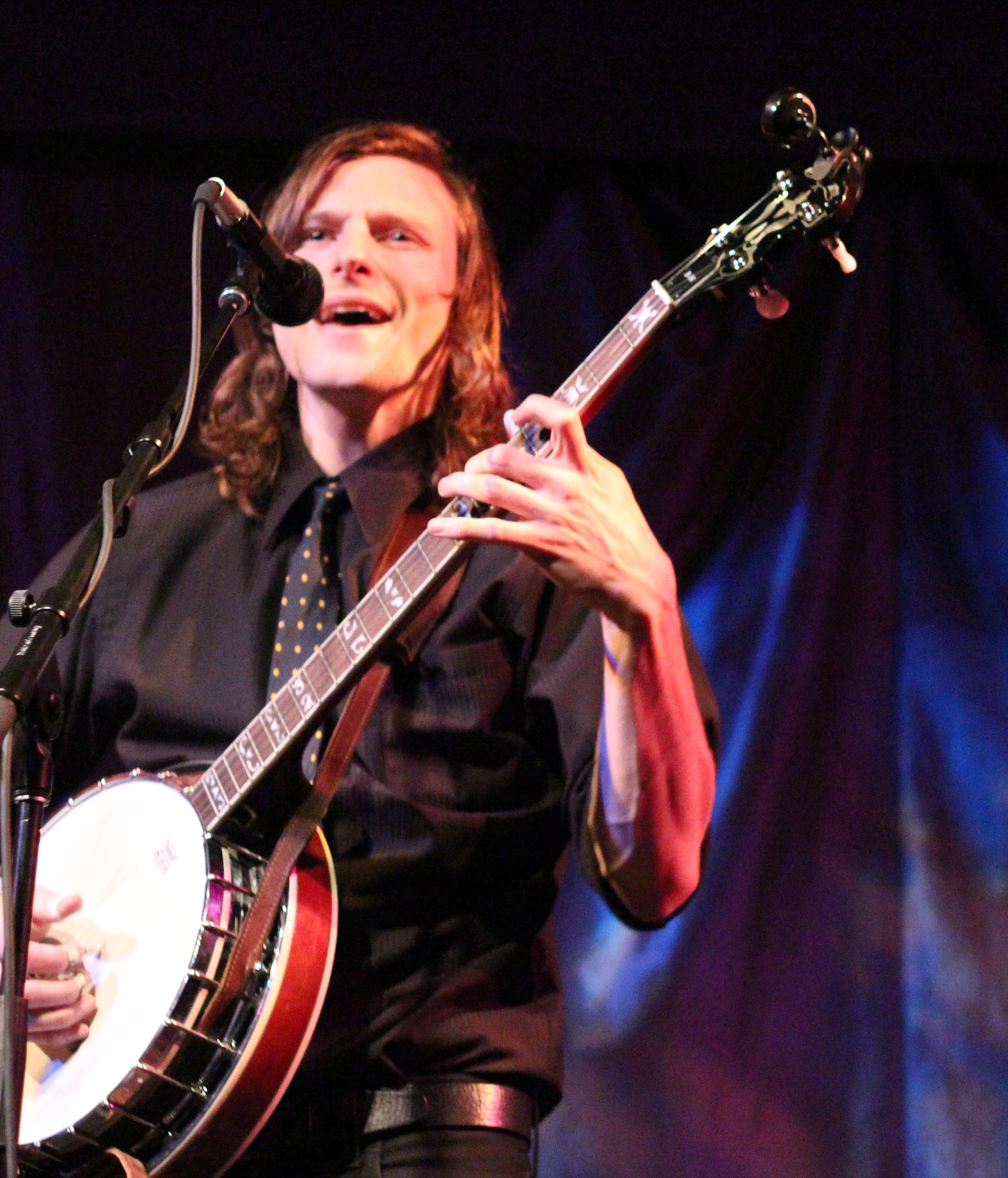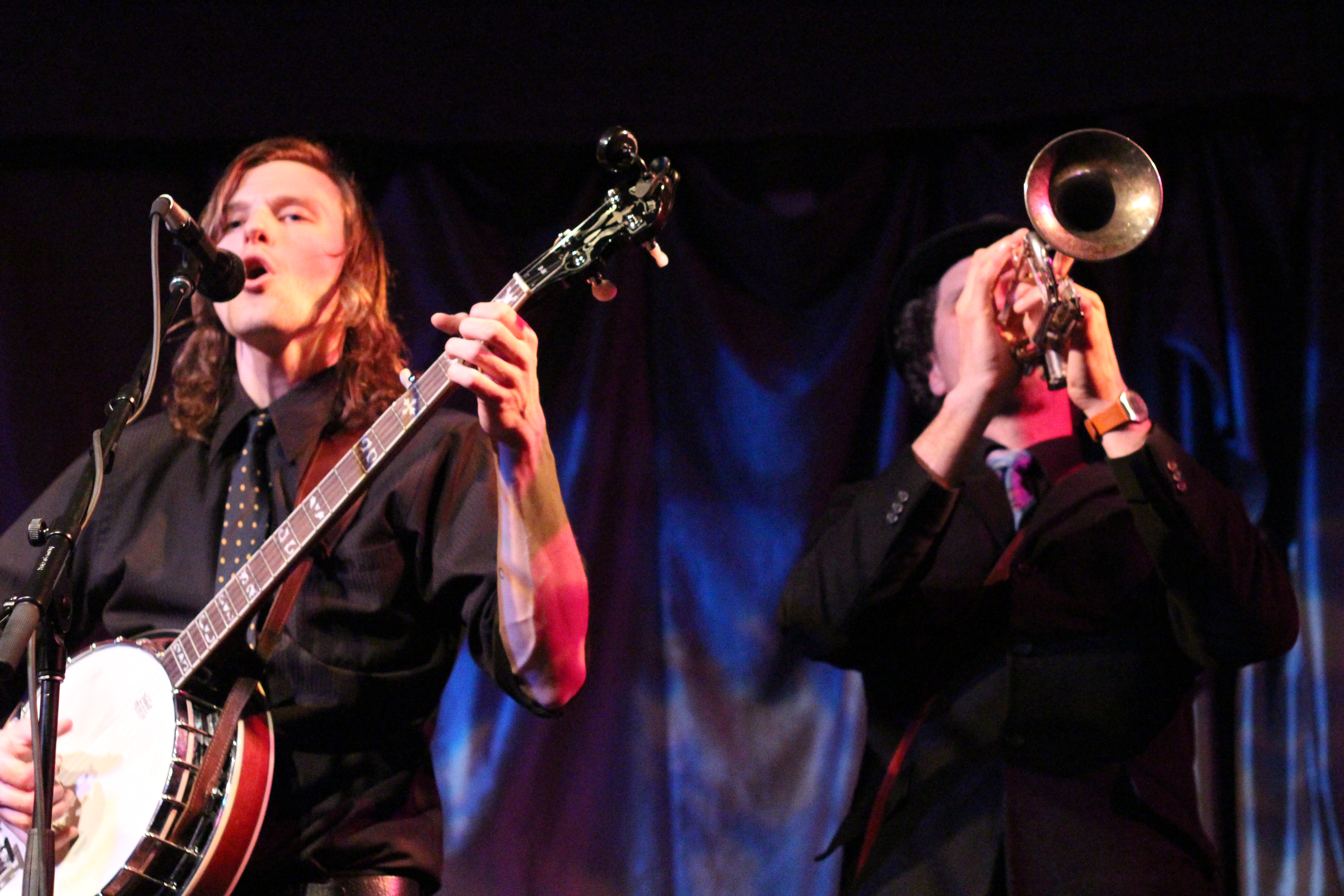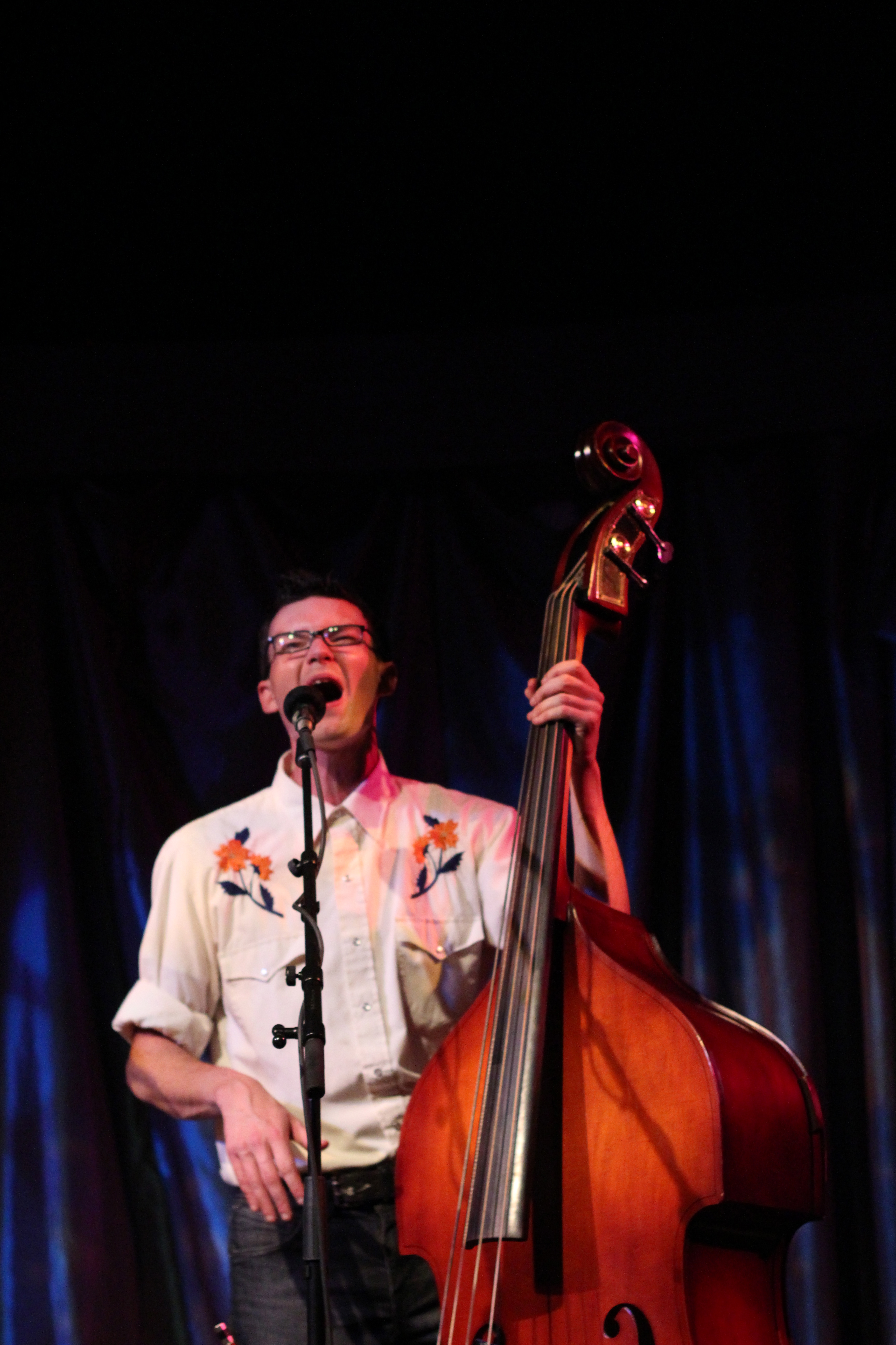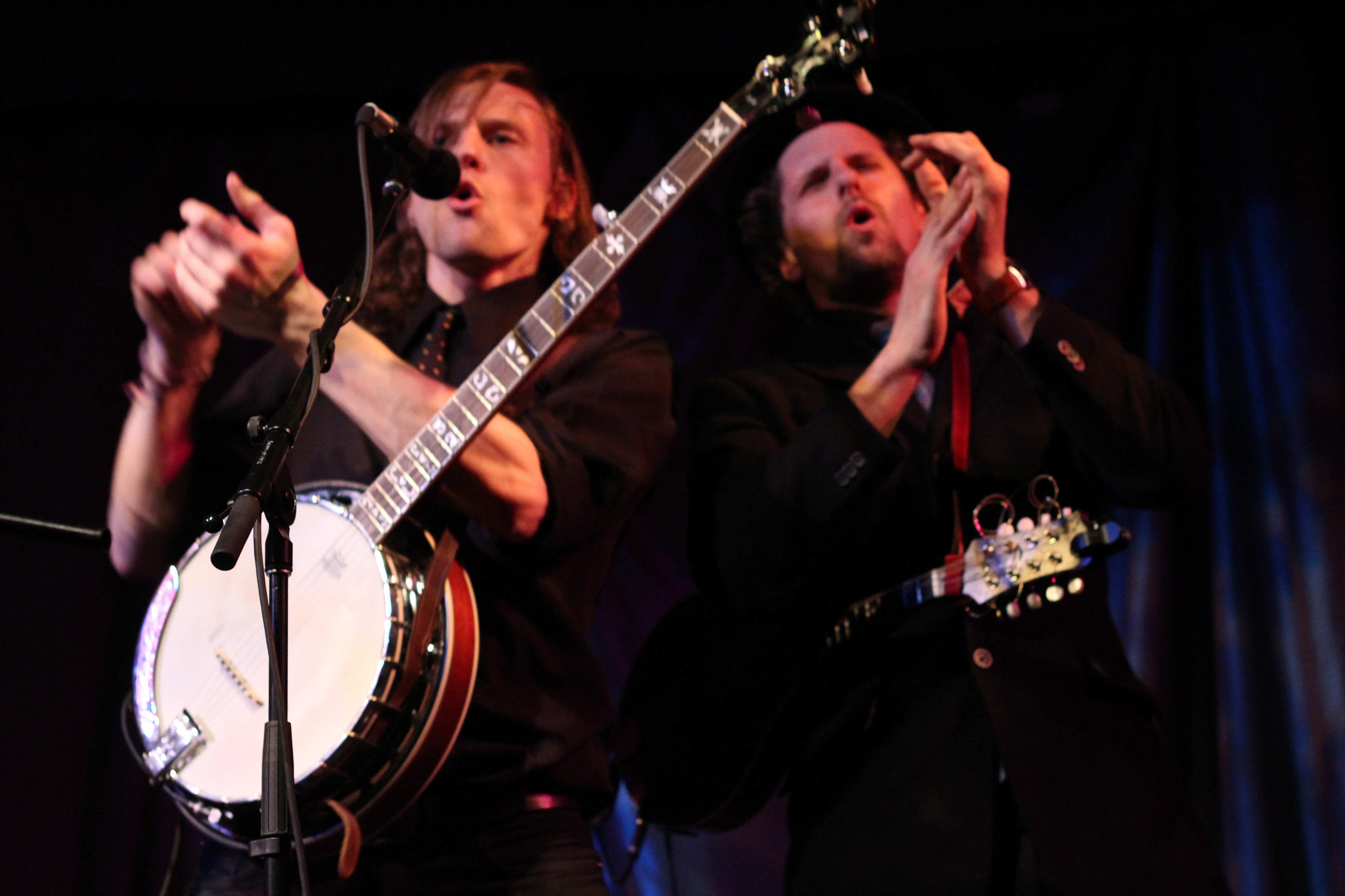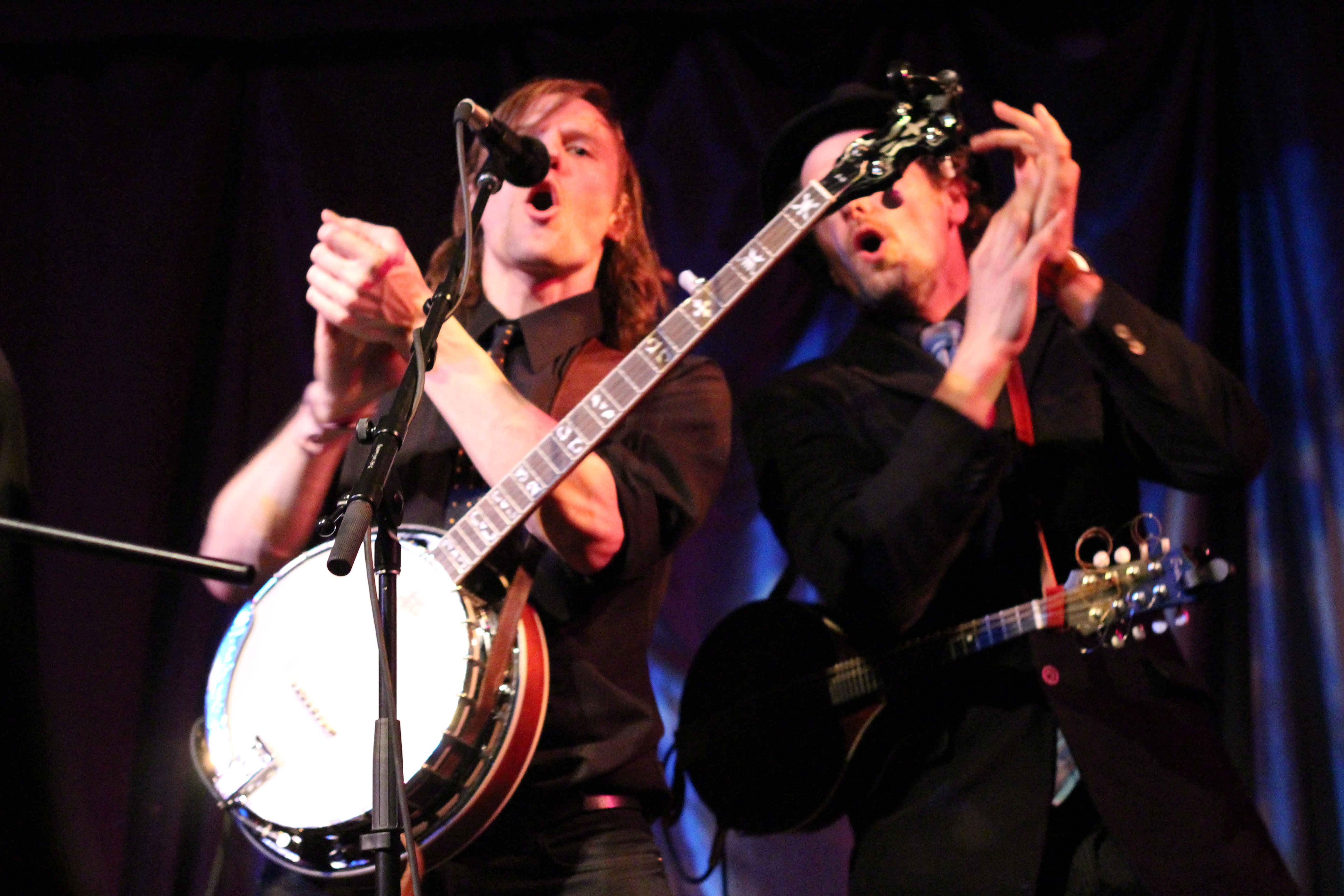 Portland’s Tricky Britches took the stage and thanked us for coming out to their sold out CD release for their new album, Good Company. I’d seen Tricky Britches play with Darlingside last fall, and theirs was one of my favorite shows of 2012. Check out my post from that show. Longtime friends and band mates, the guys of Tricky Britches are very comfortable with each other and are cohesive and well rehearsed. They alternated between original songs, mountain songs, and covers. I liked “Leave My Troubles Behind,” their cover of Vince Gill’s “One More Last Chance,” and “By My Side.” Their friend Rich joined them on banjo for “Fish in the Sea.” Seth and Jed joked about their “wardrobe malfunction”—they’d both worn western shirts with flowers embroidered on them. They thanked their Kickstarter campaign supporters for their help getting the new album out. I liked Bear’s sweet “Sugarcane,” including the lines, “She’s my fire on a cold, cold night/She’s my summer shade.” They wrapped their set with a couple of Appalachian dance tunes that included some super rhythmic stomping. The crowd was amped and clapped heartily in unison for an encore. The guys obliged with “Cumberland Fair,” a song about running into your ex lover at the fairground. Tricky Britches has a loyal local following and you should definitely check out their high-energy live show.