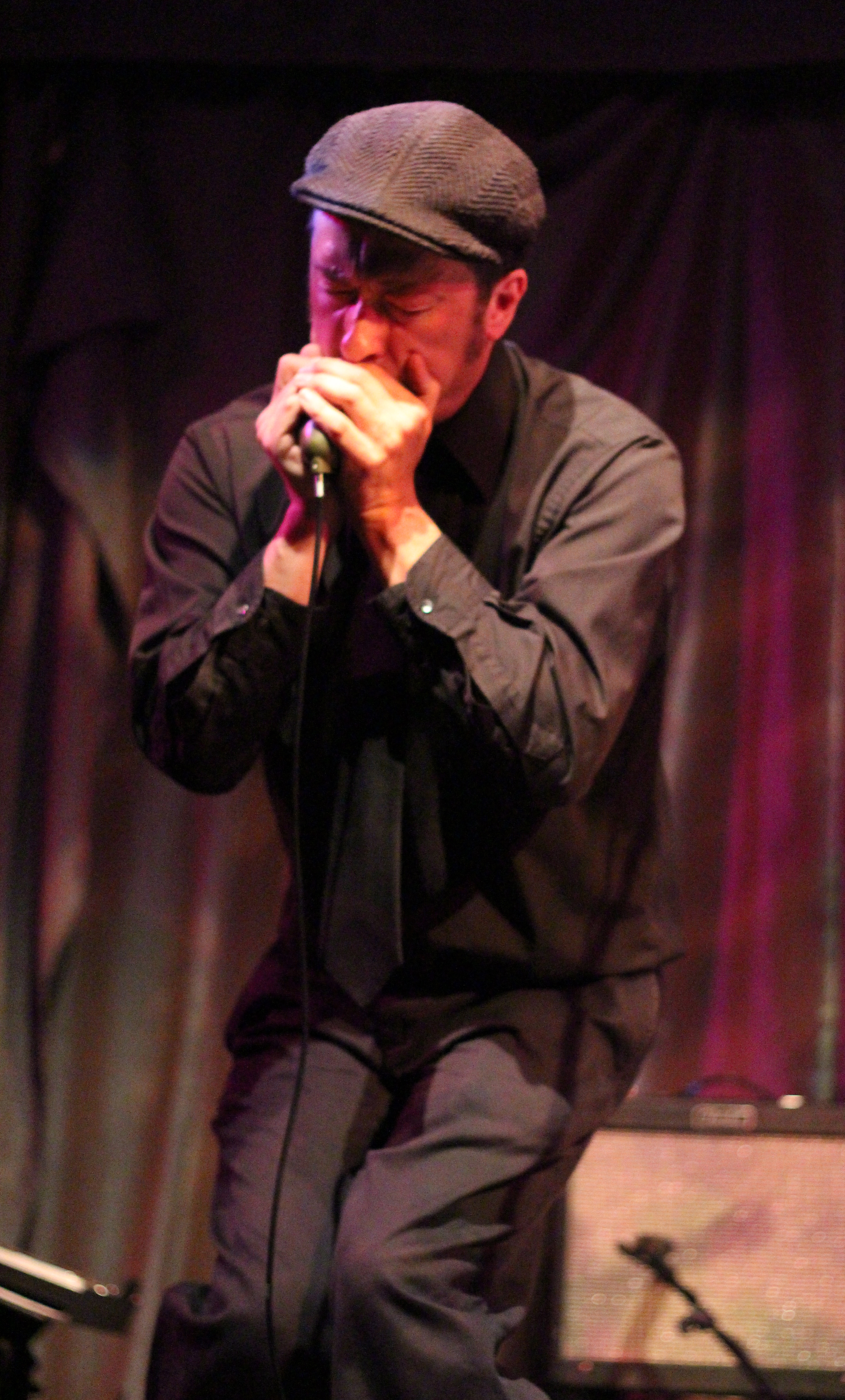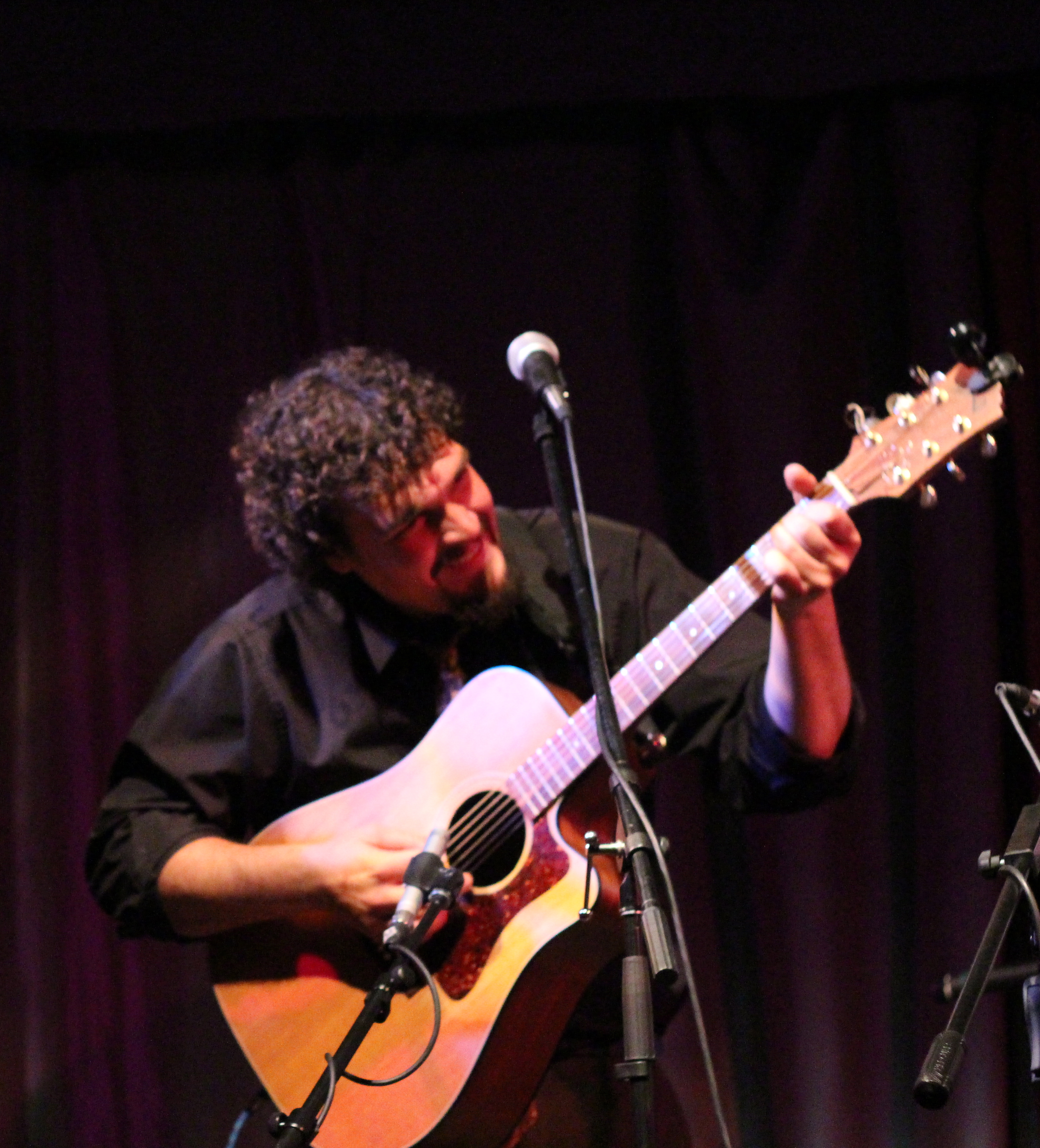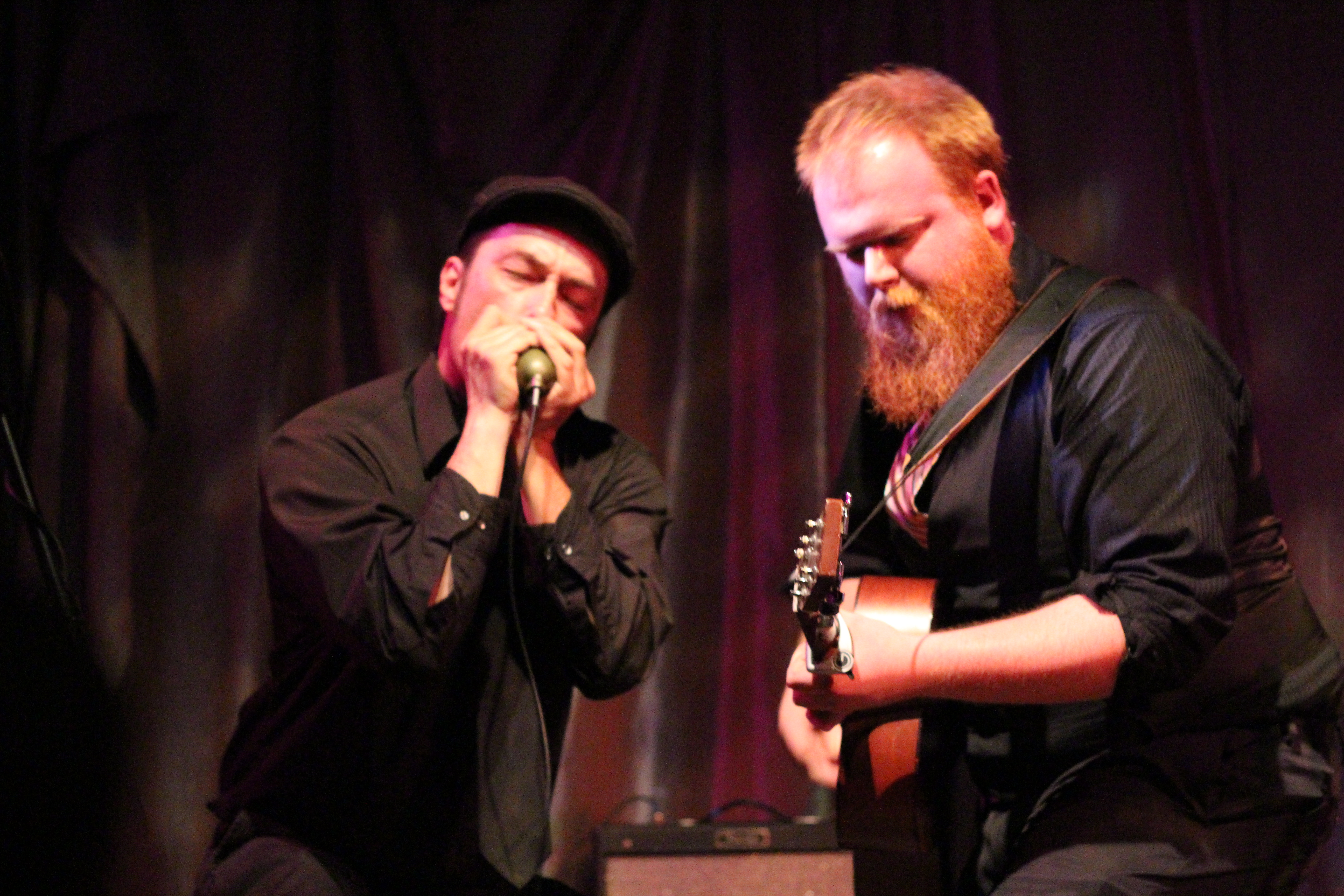 I had an awesome Saturday with great friends that included a tasting and tour at Oxbow Brewery in Newcastle, oysters on the half shell, and a trip to Damariscotta’s fish ladder. I was excited for this show, and my friends and college classmates Harriet and Atlee and Harriet’s brother Tielman decided to join me. I beat them to One Longfellow Square and was genuinely perplexed by the seating arrangements. There were about 40 people trying to crowd in the back and a gaping hole in the middle of the room where a dance floor area had been left open in lieu of seating. It confused everyone, because we go to OLS to listen and generally not to dance. People started building their own rows of seating, so I actually ended up quite close to the stage. I’d recommend against that half-seated/half-dance floor arrangement in the future. In such a small space, it has to be all or nothing.