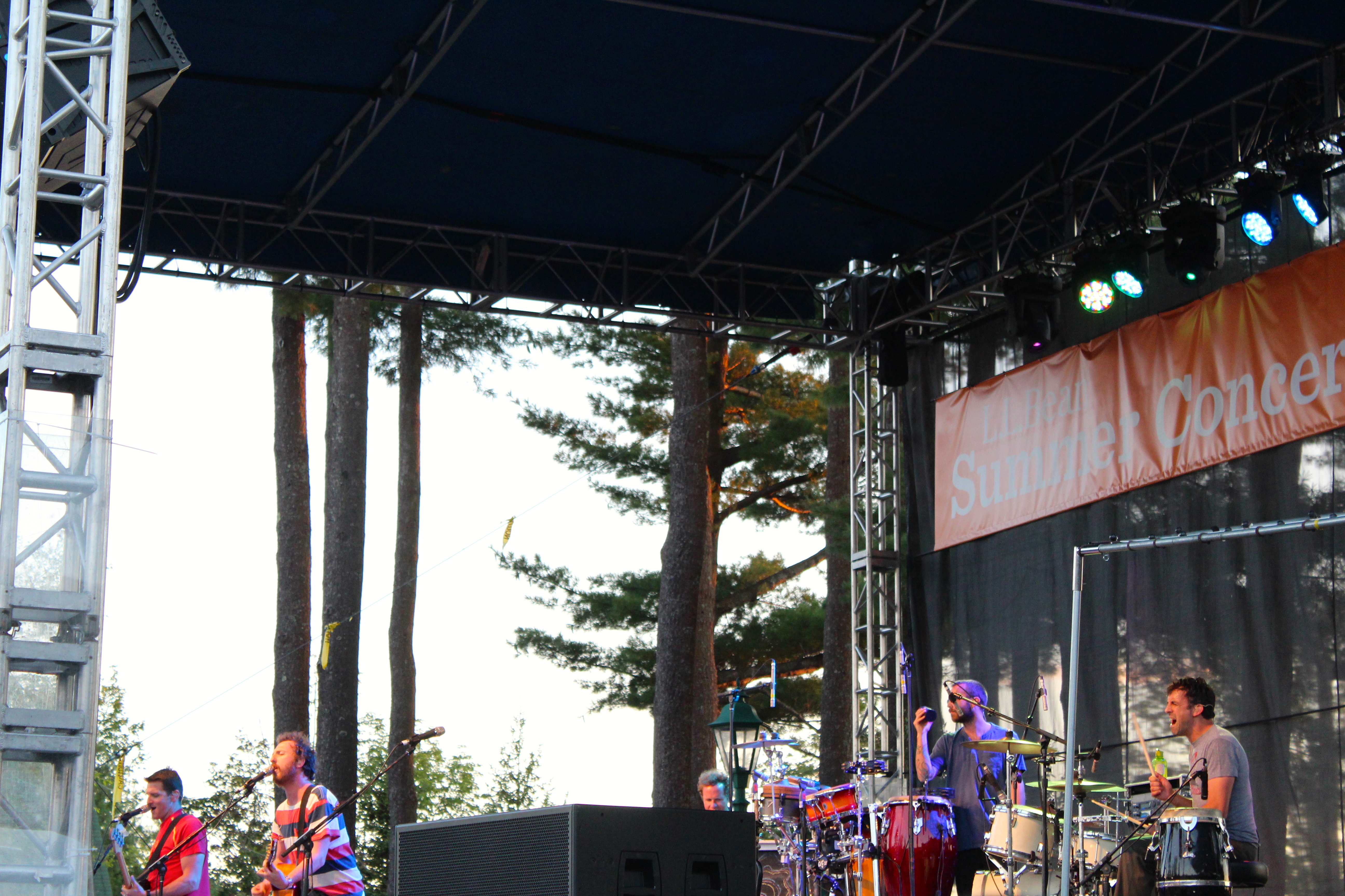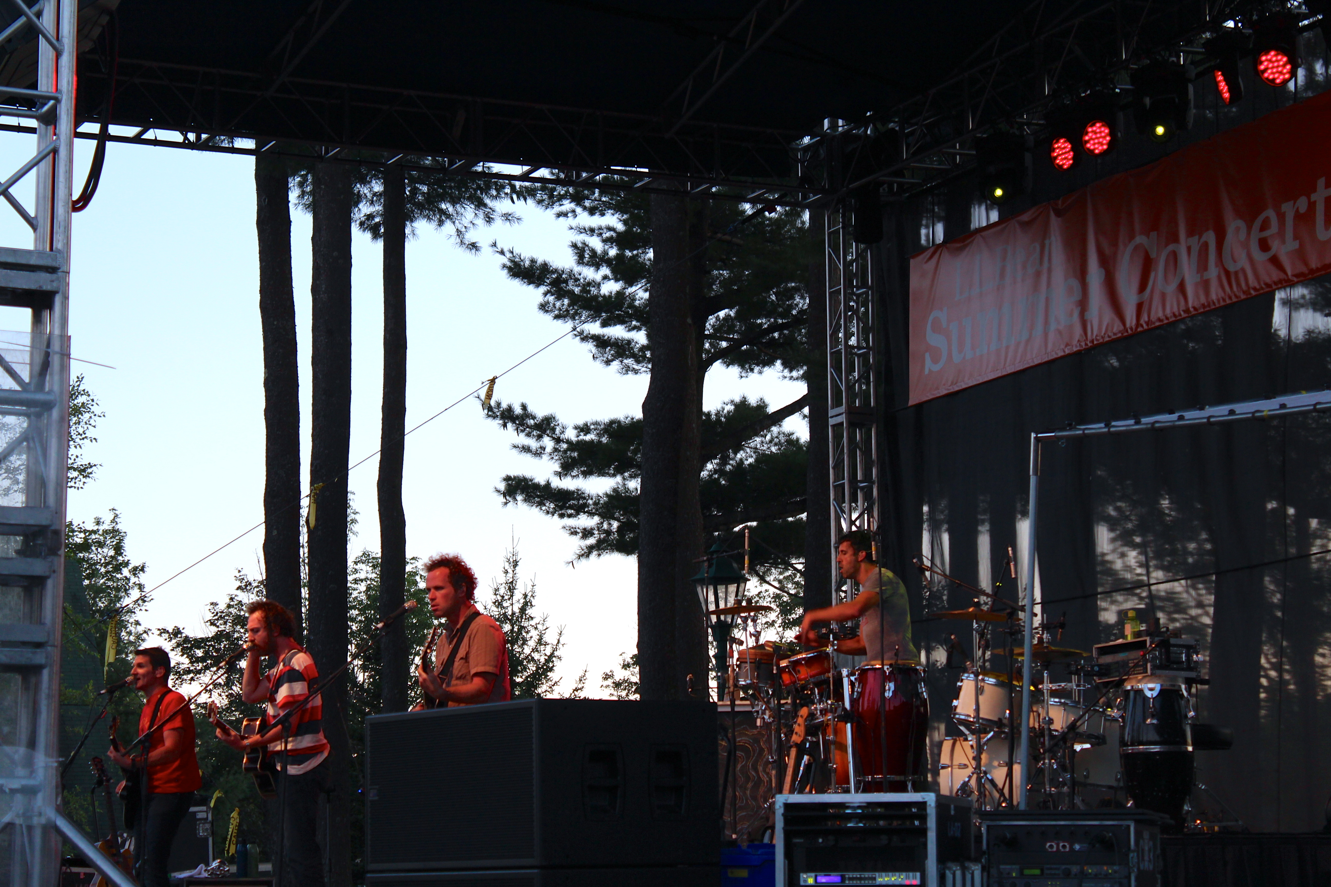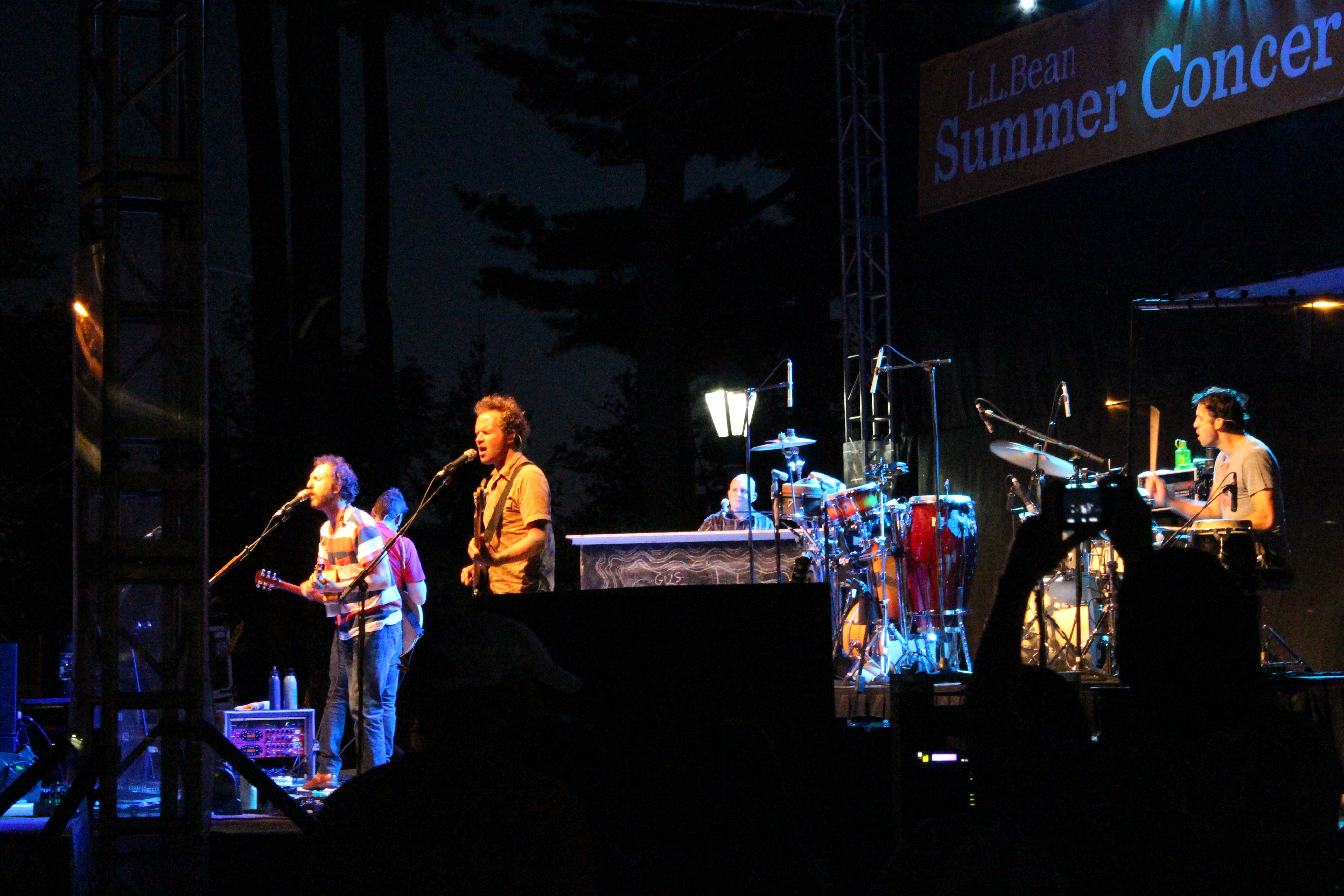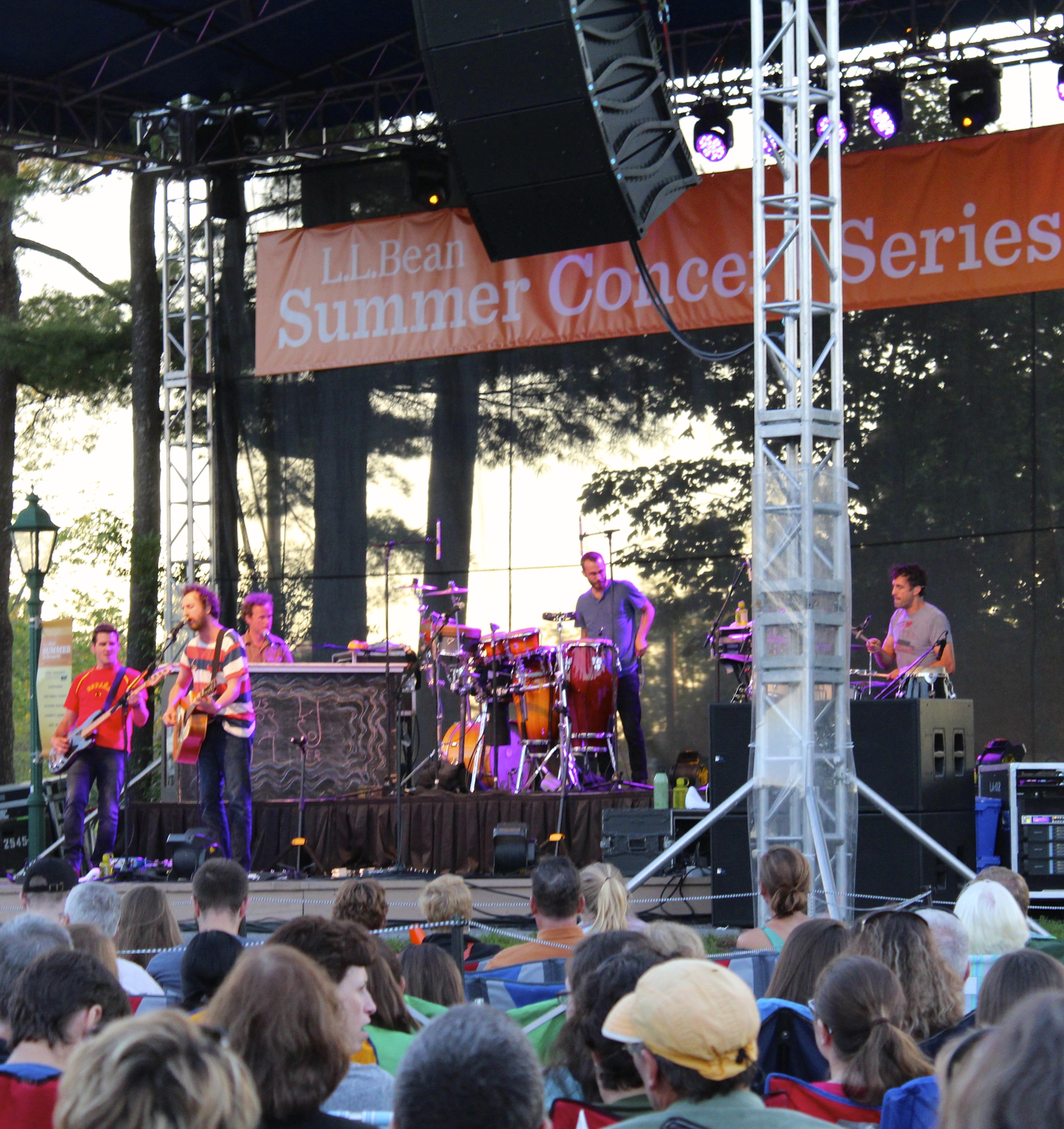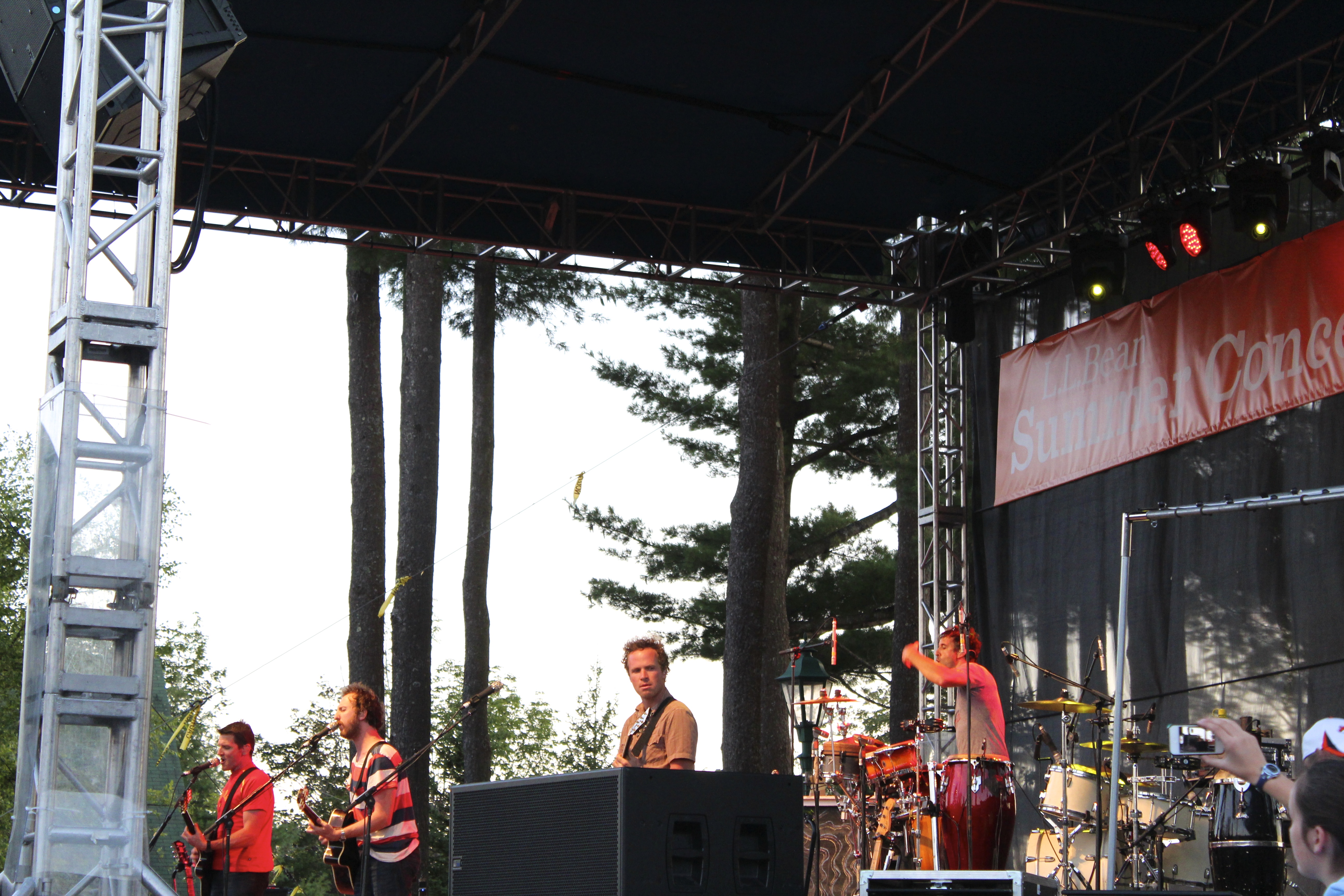 The last time I went to a concert at L.L.Bean was September of 2010. Without getting into too much detail, I’ll just say that it’s a kind service they provide to bring great musicians to Freeport, but I believe they’ve outgrown their space and going to shows there (yes, even though they are free) is stressful. There’s just not enough room to accommodate national acts in that small space. The last time I was there, I showed up at noon for a 7:30 show with my blanket, picnic lunch, and a book to pass my time, and I was at least twenty rows back from the stage without another person in sight. Since proximity to the stage is very important to me (I am partially blind in my right eye, if that helps), I’d decided after that to pass on the L.L.Bean summer concerts. I’d rather pay money to get to a venue before doors open to earn a spot up front where I can see. I understand that’s probably just my set of priorities, but I can live with it. My dear friend Andrea convinced me to go to the Guster show only because she offered to drive to Freeport from Gardiner as soon as she woke up (and she’s a morning person) to set up chairs for us for the show later that night. Even though she got there at 7:30 in the morning, our seats were still seven rows back pretty far from the stage. We learned later from Ryan that people can start setting up chairs at midnight. I thought it was 6AM. Lesson learned. It’s probably not a lesson I’ll need in the future, though. Unless one of you wants to set up a chair for me at midnight!