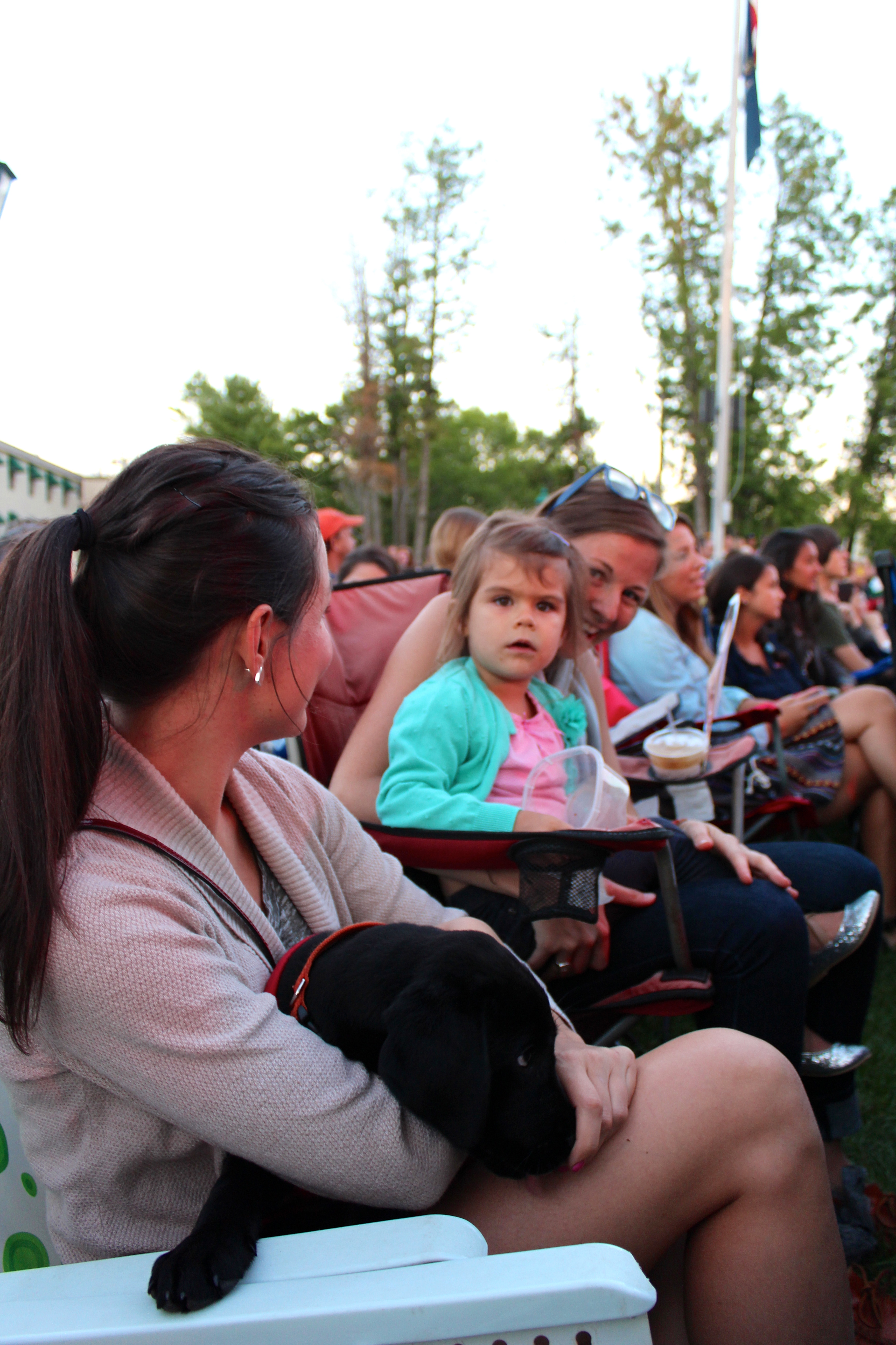 We parted ways after dinner , and Andrea and I went to meet her sister Becca and her niece Aurea. Becca brought her boyfriend’s 10-week-old black lab puppy!!!!! That deserves SO MANY exclamation marks! Ace is a doll. I got to hold him while they went into Coffee By Design, and I wish I had been wearing a camera to capture the happy reactions of the people who passed by us. People just lit up and some asked to pet Ace and then told me stories of their dogs, past and present. I totally get why therapy dogs exist! It made my day! And it tuckered Ace out. When we got to our seats that Andrea had lovingly set up for us, I put Ace in my lap and he promptly fell fast asleep. Getting to see Guster (well, until the people in the very front row stood up and I couldn’t really see them anymore) with a tired puppy on my lap was pure joy. Prepare to be inundated with puppy pictures!