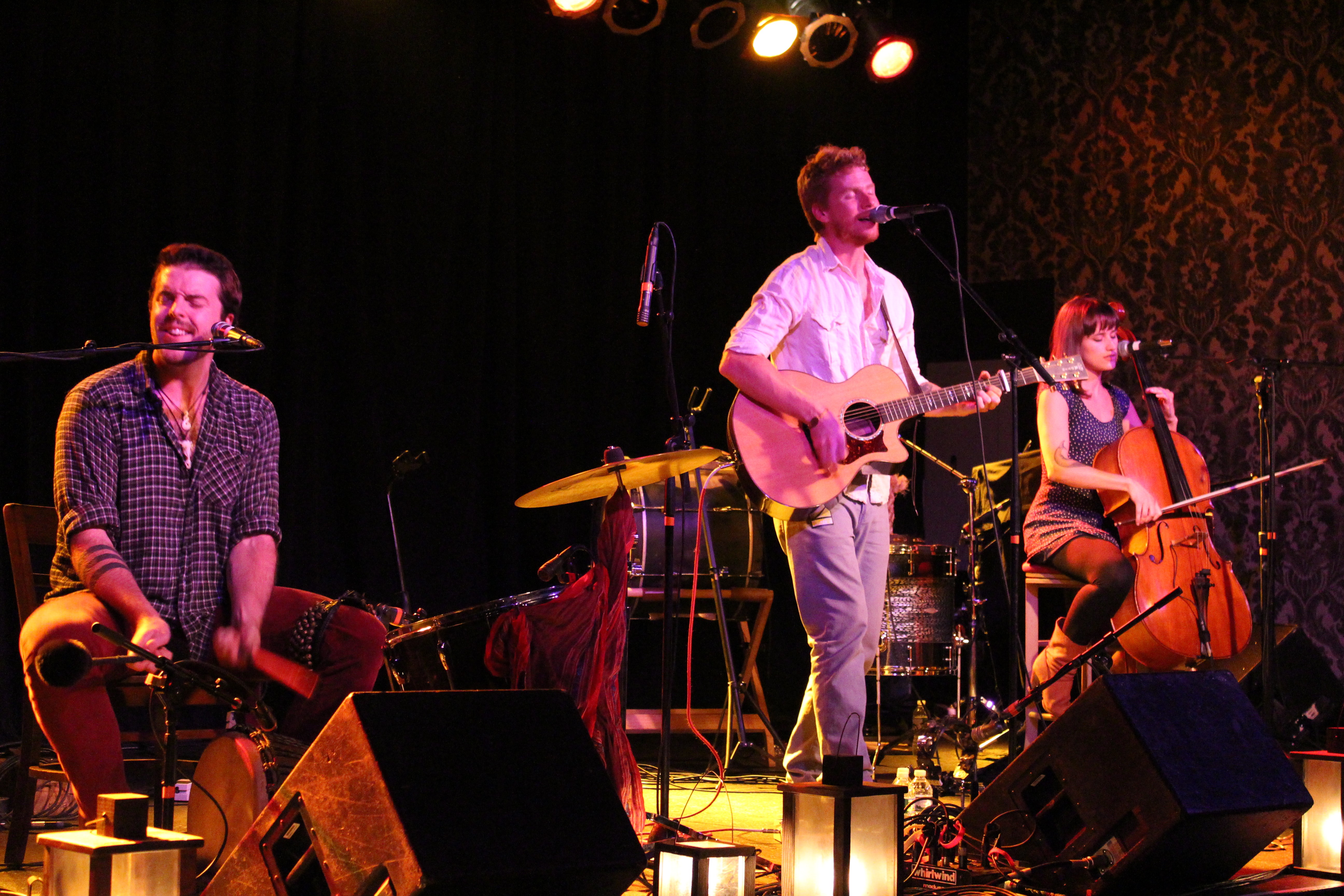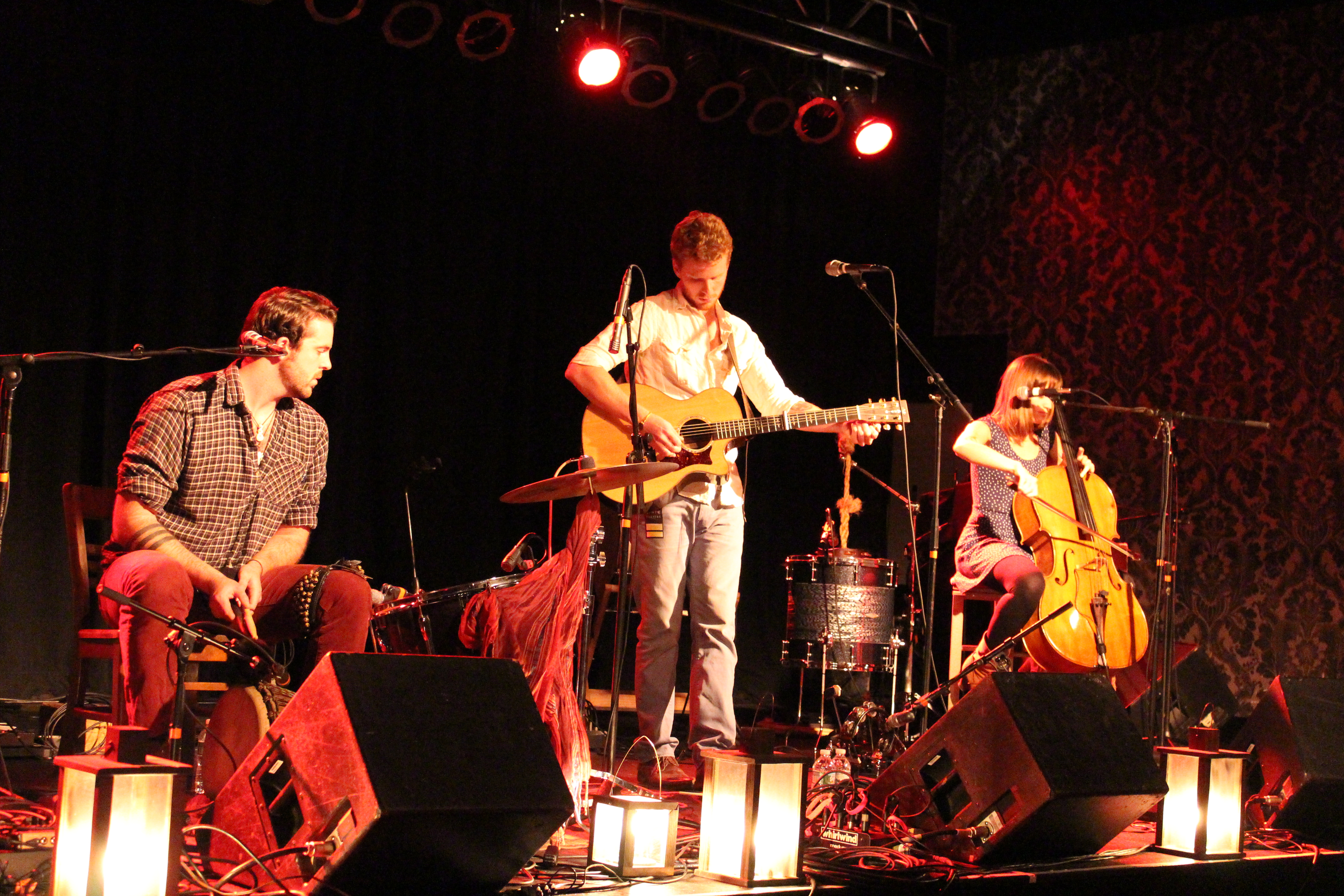 Andrea and I’d seen The Ballroom Thieves back in June opening for The Lone Bellow. It was a magical night. We both went home with a copy of The Ballroom Thieves’ EP, The Devil & The Deep, which is great listening. As much as I like their recordings, The Ballroom Thieves really shine live. Andrea and I’d seen Rachel Gawell play cello with the Thieves in June, and she has real talent. After two years, Rachel has left the group and new cellist, Calin Peters, seems to fit right in. If they hadn’t mentioned it was their “15-day anniversary” with Calin, I don’t think anyone in the room (except their fans) would have known she was new to the Thieves.