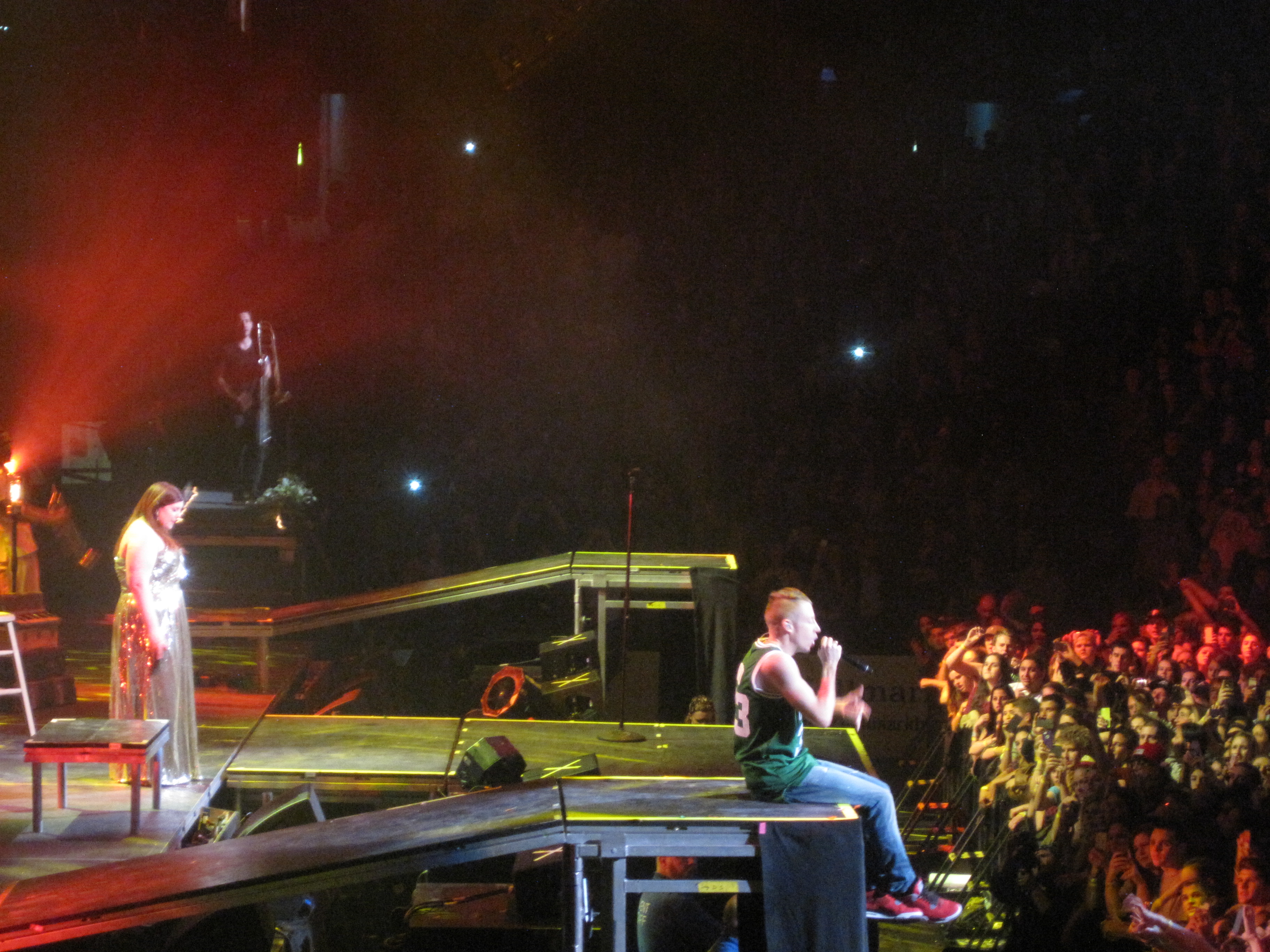 Zach dedicated “Tree to Grow” to his wife, who was there for the concert with their infant daughter. It’s a great song, with this stirring refrain: “A tree I’ll grow to let you know / My love is older than my soul.” The band returned to blast through “Bleeding Out” and then they had Aoife come back on stage to sing “Angel from Montgomery.” It was a really great performance and prompted more passionate singing from the crowd. (Here is a wonderful version from The Lone Bellow with Brandi Carlile).