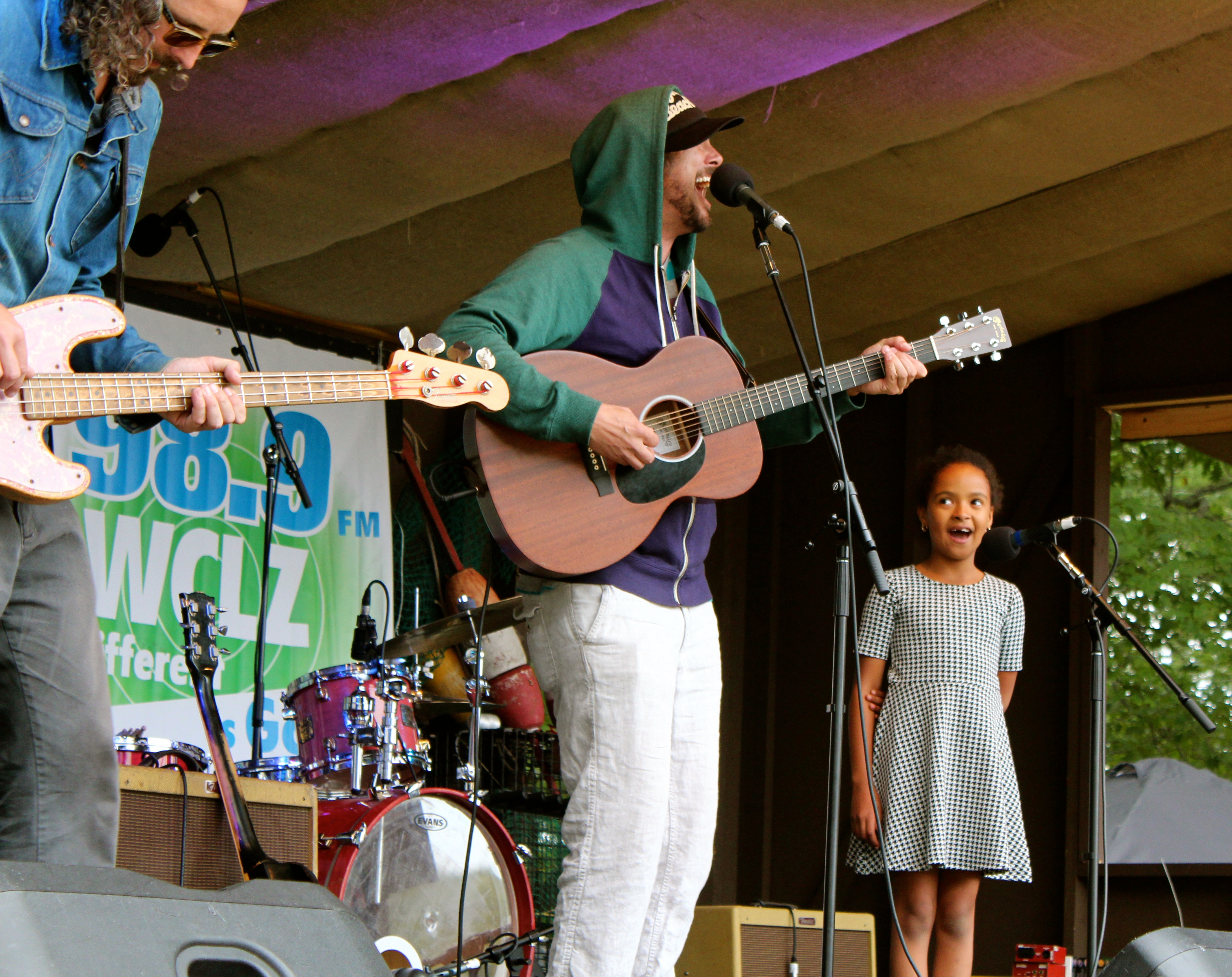 I LOVED the addition of a professional stage with a sound engineer this year! I could hear Sorcha and Monique Barrett playing as I said my hellos and wandered through the food area to scope out what I might want to get for lunch later. Sorcha is a friend in music—she’s played Swine and Stein before and I’m always happy to get to see her live. She and Monique harmonize beautifully, and their covers of “Jolene” and “Crazy” were flawless. I wasn’t taking notes because I wanted to enjoy the day, but I liked the song Sorcha wrote for a friend’s wedding (the name of which I’d normally have jotted down), and one of Monique’s that might be called “Make It Better.” Later in the day, I introduced them to Johnson Hall director Michael Miclon. We talked about having a singer-songwriter circle show at Johnson Hall sometime this season. I took Sorcha and Monique into Johnson Hall to show them the beautifully renovated performance space downstairs and to show off the cleaned up third floor, which is beautiful and totally ready for renovation. Built in 1864, Johnson Hall has been a ballroom, a movie house, and a theatre. Johnson Hall hopes to renovate the upper floors to use for performances and other events. The potential in that space is unreal. Monique and Sorcha talked about how cool it would be to record an album together (since they often play together, but don’t have one) in that space. The acoustics are amazing. When I took them to the top floor, they were so wowed by the beauty of the space that they broke out in song! I have high hopes for the capital campaign and would LOVE to see Johnson Hall restored.