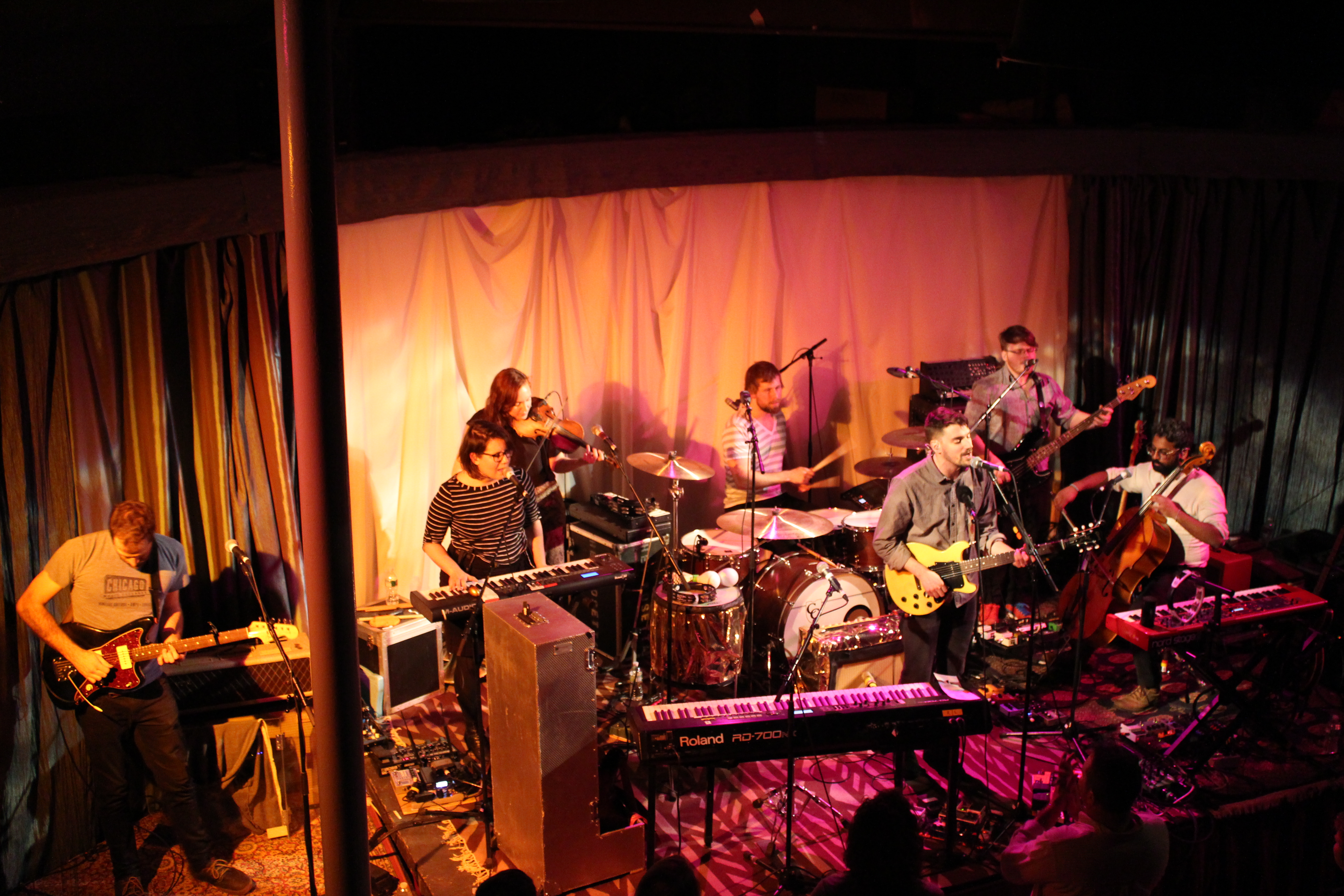 Hey Rosetta! took the stage filled to the brim with people,equipment, instruments, and cords. They are seven mostly multi-instrumentalists, and only six of them fit on the actual stage amongst all three keyboards, six guitars, two bass guitars, a cello, French horn, trumpet, fiddle, a drum kit, glockenspiel, and all variety of other percussive tools. They opened with “Soft Offering (For The Oft Suffering)” and completely won over the audience in short time with their powerful, layered sound. It’s also the opening track off their newest album, Second Sight, which just released in the US this week and you can stream here. Hey Rosetta’s last album, Seeds, came out in 2011, so this album is much anticipated.
