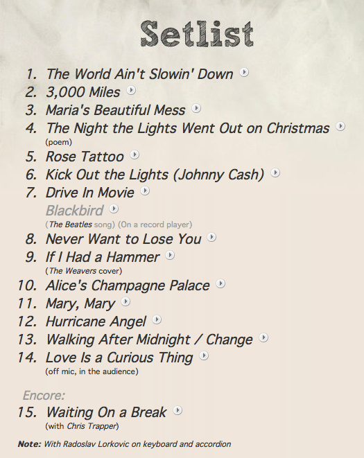 Since they really did have to get off stage with time to clear off their insane amount of gear so another band could set up for a show, Hey Rosetta! didn’t have time to dally. They invited us to get up and dance together to “Red Heart,” and it was then that I noticed how many great folks were in the crowd. People were really friendly, so I suspect a lot of them were Canadian. They really didn’t have time to leave the stage and wait for us to clap and come back for an encore, so Tim just introduced their last song “Bandages” as being about the long Newfoundland winter and being ready for spring. After Juno and the amount of snow shoveling I’ve done the last two days, I’m ready for spring now, too! Come back anytime, Hey Rosetta! You guys are such a pleasure to see live!