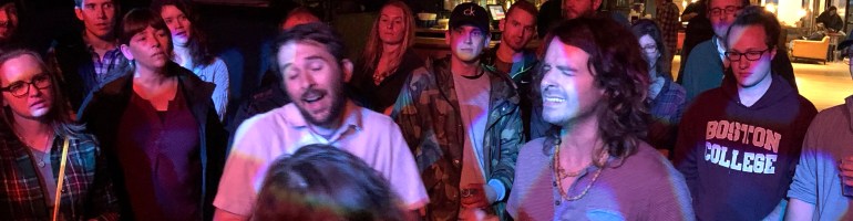 IMG_6335After they finished playing Only Way to Be Alone, GOW took and played many, many audience requests, including “Amazing Eyes,” “My Own Sinking Ship,” and the song Keith said is his favorite to play live, Woody’s Hood Boogie Woogie.” Keith remembered that they usually unplug and play part of their set from the floor at Port City Music Hall shows (which is just awesome), and asked us “should we play the rest of the songs down there?” We agreed enthusiastically, so the crowd parted for Keith, Tim, and Dan and the maybe 80-100 of us there encircled them for the rest of the night. Dan played guitar, and we all sang the last ten songs of the night together, which I thought was lovely and special. Also, the people around me had nice voices! Bonus!They started with “Loud Love,” which is one of my favorites. There was a kiddo named Clover who requested “Never Gonna See Me Cry,” so they played that for her even though they hadn’t practiced it and weren’t confident they knew the words (they didn’t, but figured it out). I was really happy to hear “I Should Go” and “That’s Some Dream.” They played “Here Are The Problems” as a request even though they weren’t sure they’d remember it, either. After a couple of songs they didn’t remember well, Keith wanted to play some newer songs they knew better and so they played “In a Heartbeat” and “That Feeling” from their 2018 EP, Part of You.