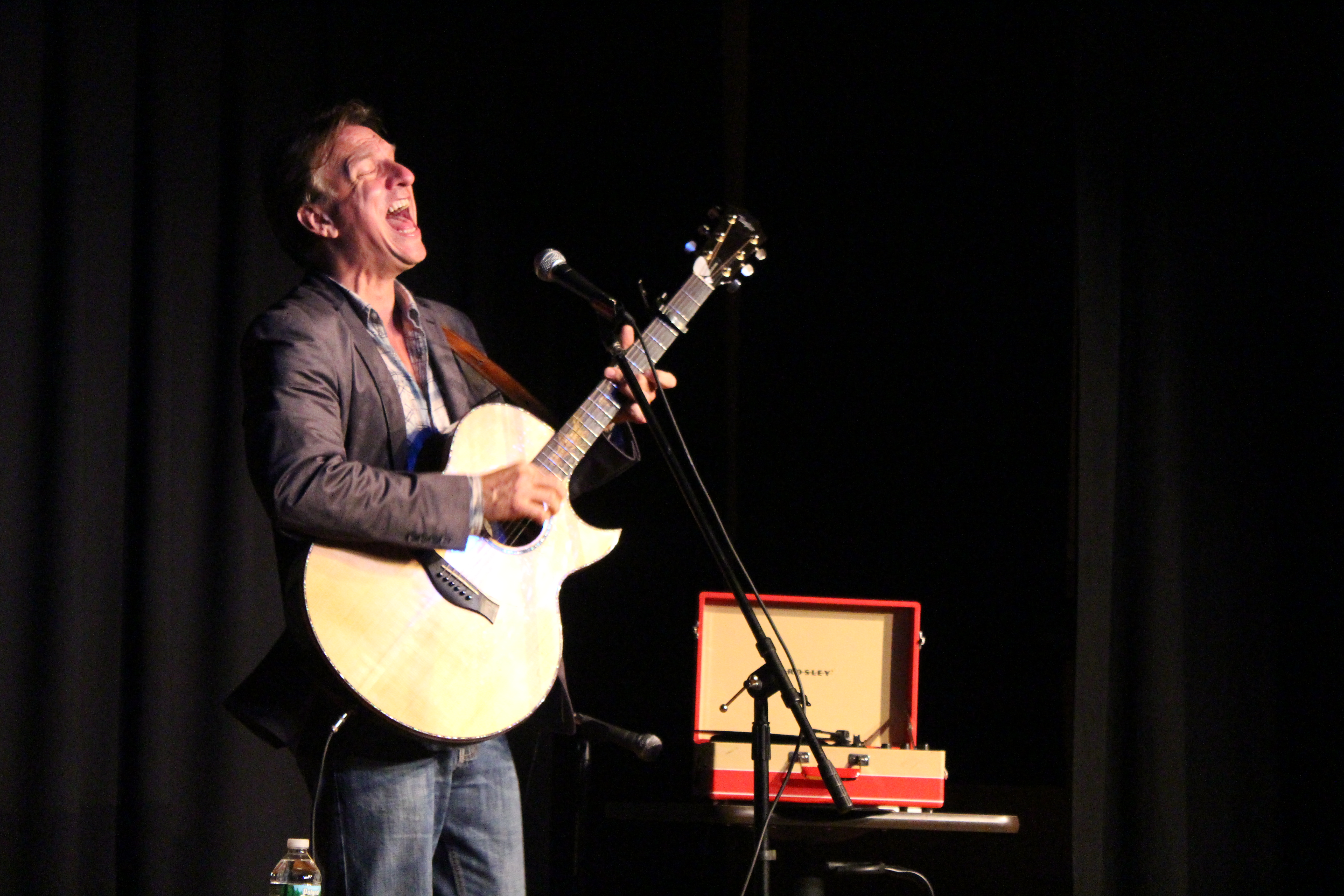 It was a really busy Friday night in Gardiner because a lot of people were in town to enjoy Gardiner ArtWalk. I peeled myself away from some of my favorite galleries (yes, we have a few in sweet Gardiner, Maine) to grab a good seat at Johnson Hall to see David Wilcox. Executive Director Mike Miclon has raved about David Wilcox’s music for a while now, but he’d never had a chance to see the North Carolina resident live. Mike discovered David Wilcox years ago on NPR during an episode of Car Talk that played David Wilcox’s tune, “Rusty Old American Dream.” Mike was hooked. He bought David’s complete musical collection and was really excited to see him live for the first time. His energy got me pumped for the show. Also, Mike had made a mix CD of music of people who are performing at Johnson Hall this season, and I kept skipping back to play David Wilcox’s “Language Of The Heart.” It’s beautiful. His live show, however, was far from it.