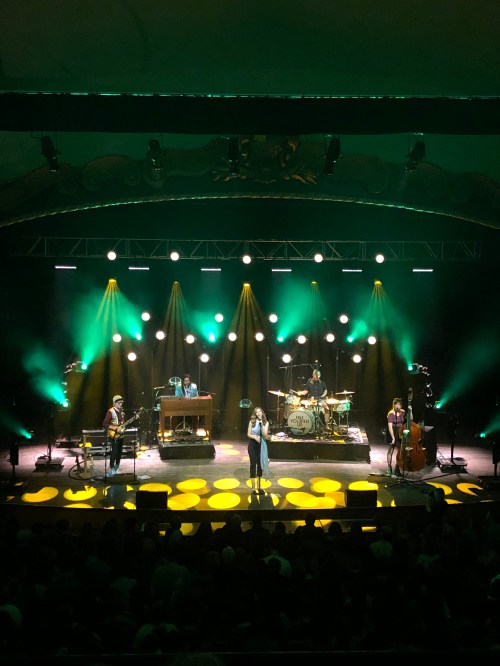 Lake Street Dive’s Rachael Price broke her foot “dancing alone in her living room” and so she sat on a giant blue velvet chair in the center of the stage. While she really tried to dance and move while seated and she sounds incredible no matter what, it really did affect the quality of the overall performance. Also, their sound was so echoey that it was really hard to hear. It was the worst Lake Street Dive experience I’ve had, though both issues were out of their control. I liked pianist Akie Bermiss on lead vocals for their cover of Steely Dan’s “Dirty Work” and am always glad to hear “You Go Down Smooth” in person.