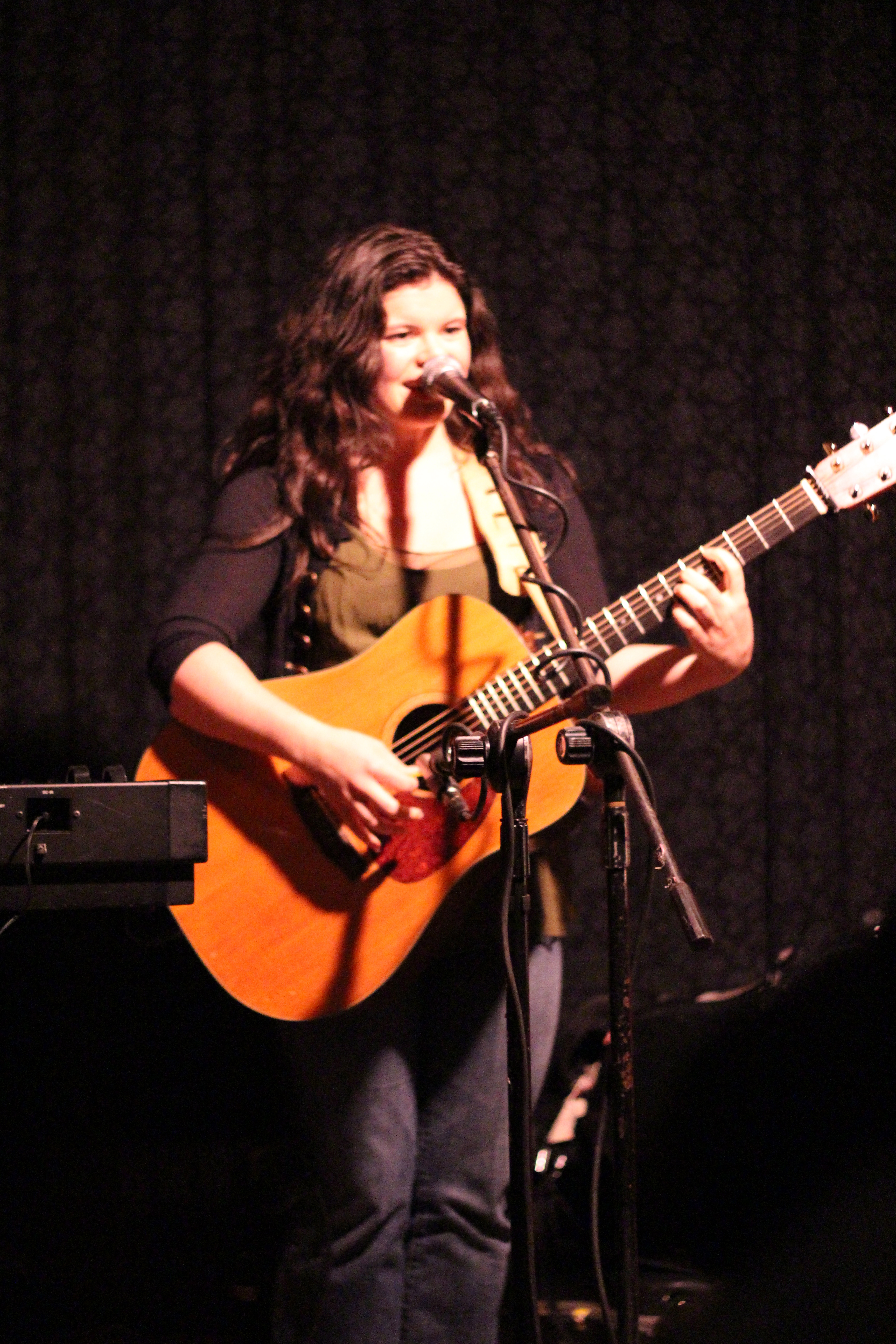 I was seated at the table front and center at Slates with two married couples, their friend, and a woman who’d driven up to Hallowell from South Portland. Everyone was really warm and it was great to have some people to experience the show with. Rebecca Loebe took the stage and she was charismatic and sweet. Her first song was cute—“I can’t compete with her in that dress.” She gave a shout out to her new hometown, Austin, in her second song, “Darlin’.” Rebecca told a hilarious story about how she is inspired to write songs about the people she meets. “The Chicago Kid” is about an 18-year-old on his first flight ever to meet up with his high school sweetheart later that day and marry her at City Hall—a fulfillment of their promise and his reward for graduating for high school. I guess you should consider how much you want to tell Rebecca if you ever end up sitting next to her on a flight! Her last song, “Meridian,” was inspired by a town she passed on a long road trip from Texas to Georgia. She was a solid storyteller—with a pretty voice and warm presence.