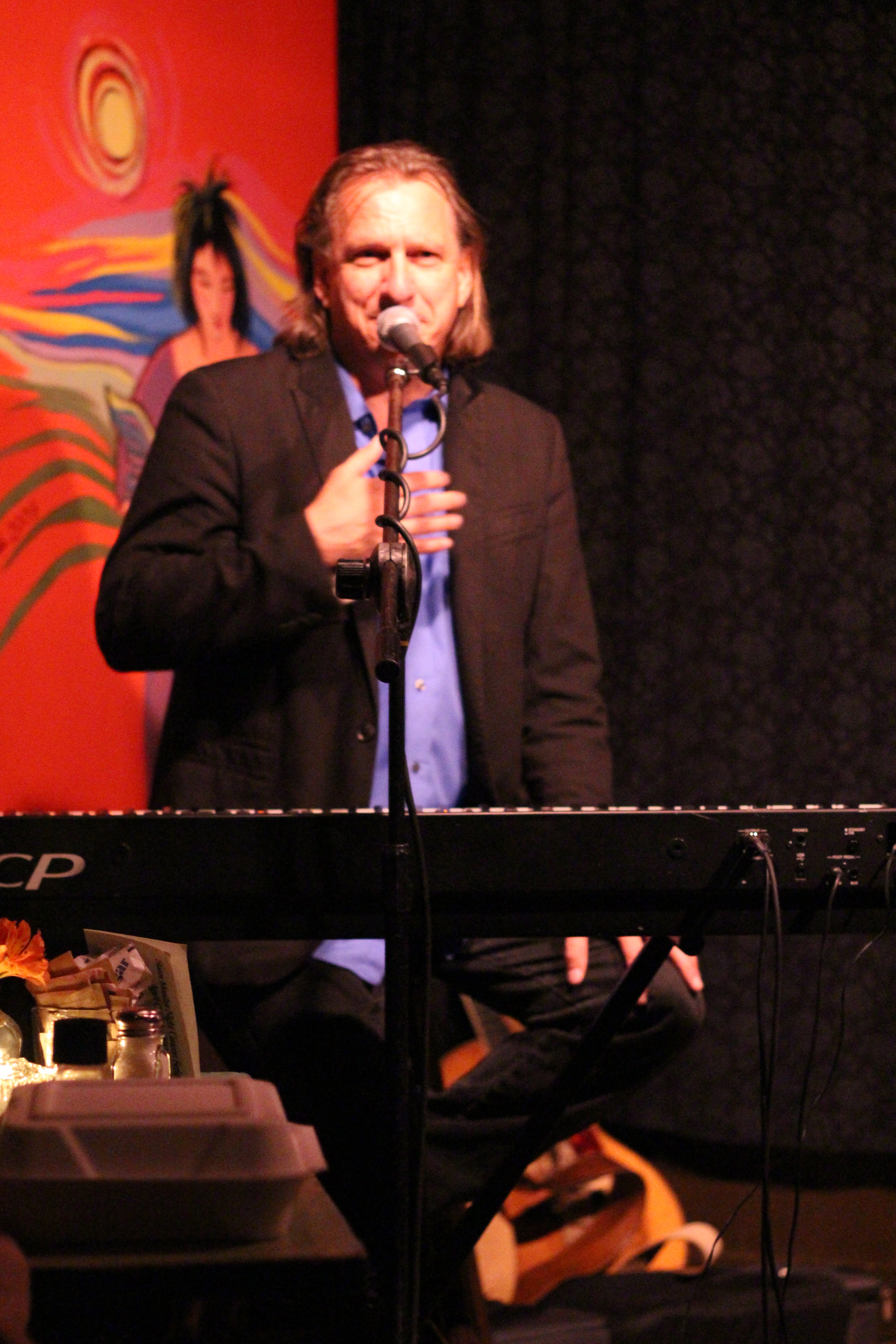 Rebecca introduced Ellis and stayed with him onstage most of the night. He didn’t mention it to us, but fans on his email list received word that he’s struggling with vocal chord issues and needs to take better care of his voice and be more careful hitting some of his high notes. Rebecca helped fill in the sound all night.
