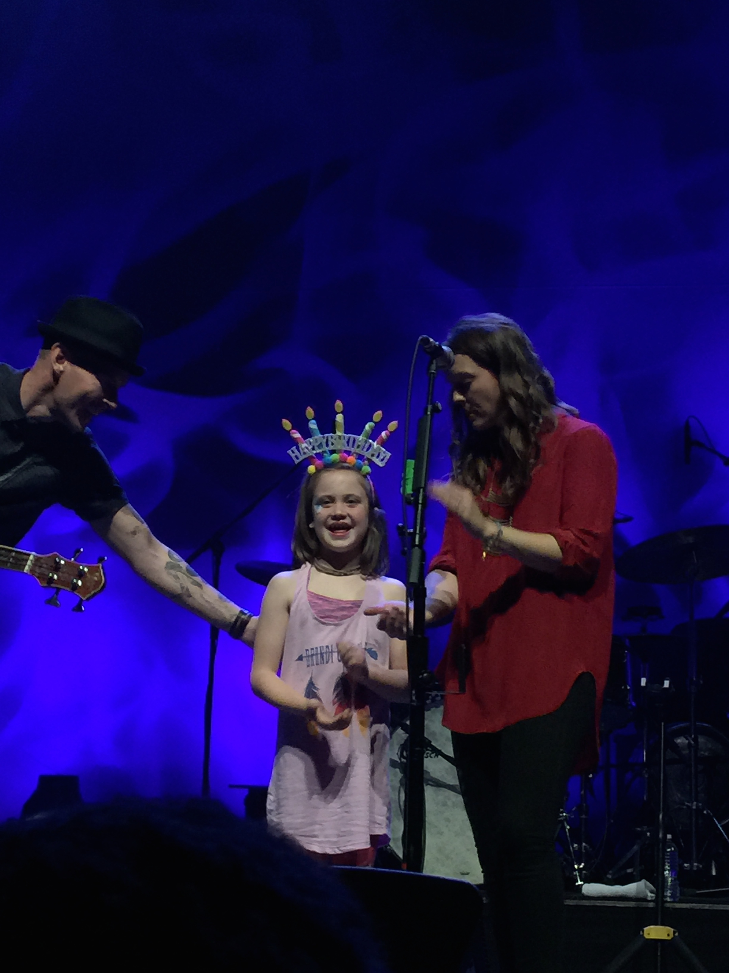 A little girl in the front row was wearing a birthday cake hat and Brandi pulled her up on stage. We sang Happy Birthday to Tiernan (who was celebrating her 8th birthday in the best possible way!) and Brandi asked if there was a song she really wanted to hear. Tiernan requested “Keep Your Heart Young” and stayed right up there with the band and sang it with Brandi into a shared microphone. It was a precious moment and quite the birthday present!