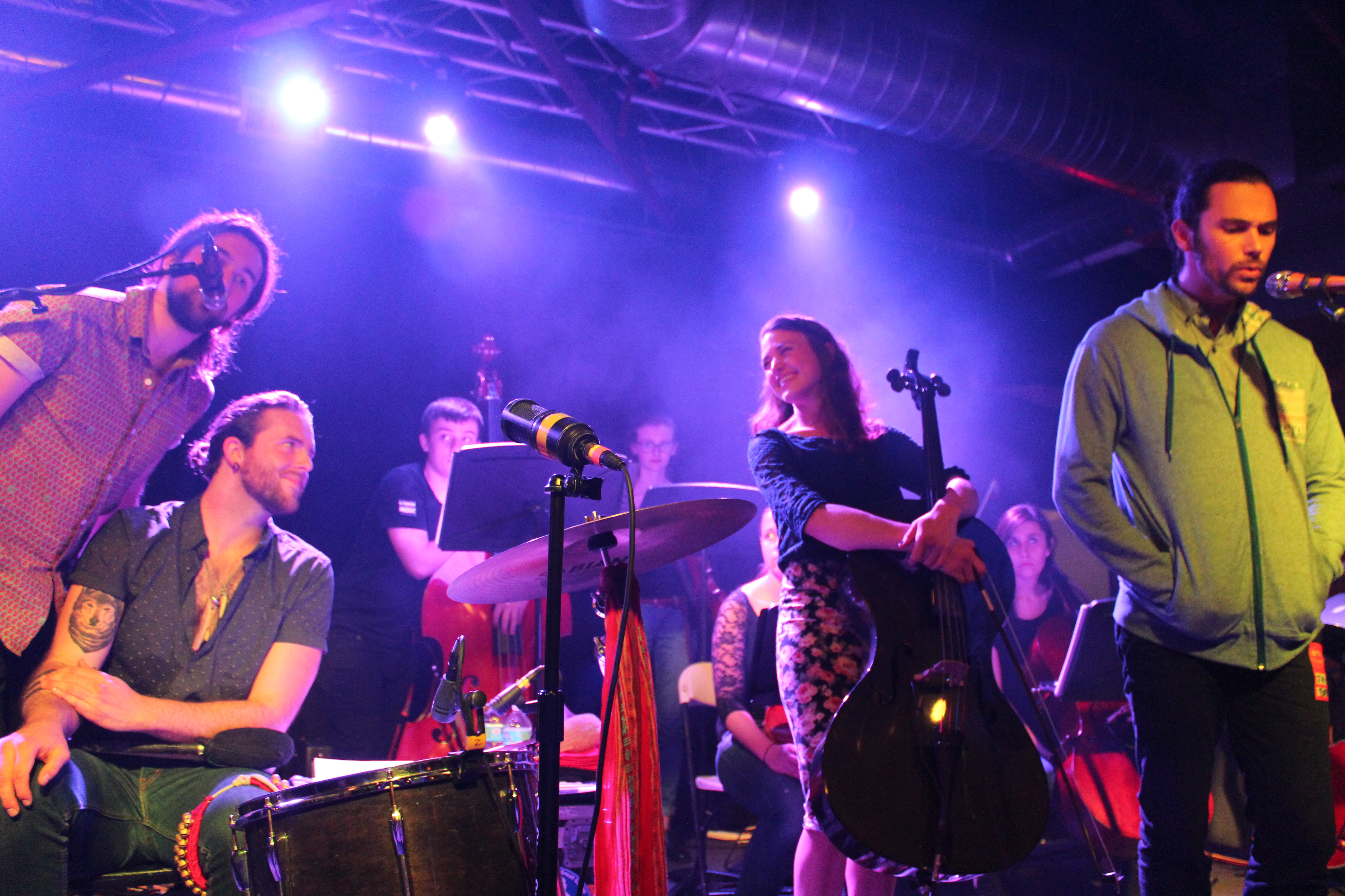 Sadly, there was a loud woman standing right behind me for the bulk of Tall Heights’ set talking with her friends about how “great” the band was and how she’d “pick up the CD after the show.” I was so happy they were happy, but they were also five feet from the performers and one foot from my ear having this ongoing conversation at full volume. *This leads me to concert etiquette tip #1 of the night—if you really must have a (long, loud) conversation, please move away from the stage where people who are probably bigger fans than you are trying to listen.* Unfortunately, I was distracted for most of Tall Heights’ set, but I always appreciate their lovely harmonies, and I enjoyed that Eric Jones (manager of The Ballroom Thieves and Darlingside) played drums with them for a lot of their set. Tim Harrington (guitar) joked that although we were there to celebrate the release of The Ballroom Thieves’ new album, their exciting debut of a Tall Heights tank top surely was more important. He dubbed the night “Tanksgiving.” They wrapped their set with “Spirit Cold,” with the delightful Maine Youth Rock Orchestra as featured performers.