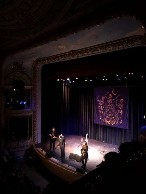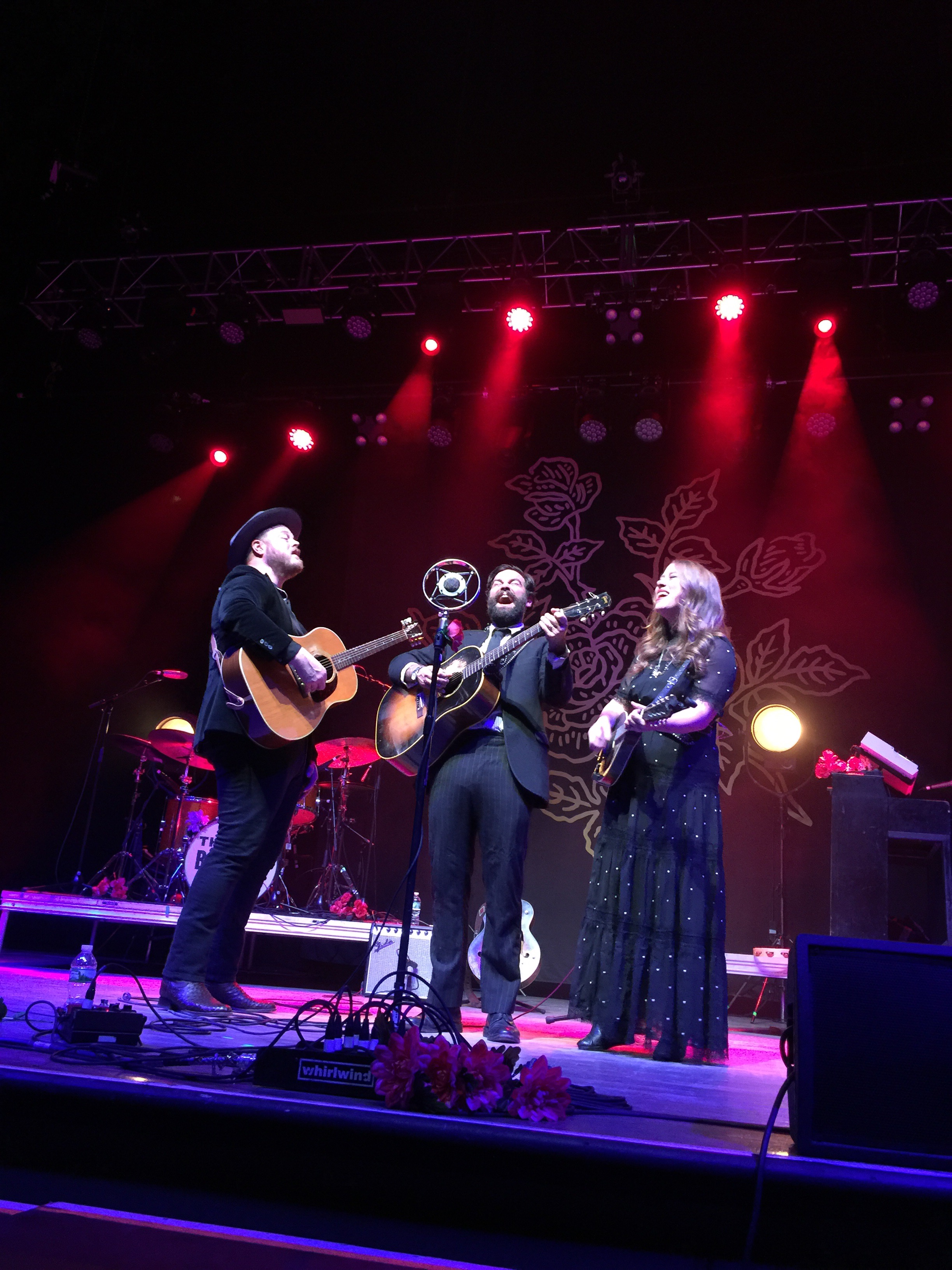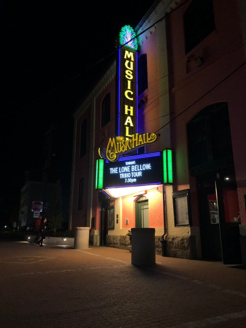 When Dan and I started dating, he surprised me with a mix CD of some of his favorite songs because he knows how important music is in my life and wanted me to get to know him better through the songs he loves. I melted. My huge music collection lives on a hard-to-access hard drive, so I reciprocated by buying him The Lone Bellow’s first CD from 2013. A week later, he joked with me, “I just want to tell them it’s going to be okay.” I explained the inspiration for those first songs, and then he understood. He picks on me for liking sad songs so much, and we joke that the more unplugged, the fewer percussive instruments, and the more harmonies there are, the more I’ll love a show. He’s not wrong. So when I saw that The Lone Bellow was going to leave the band behind (sorry, Jason!) and tour with just Zach, Kanene, and Brian, I was pumped. I wanted to win Dan over about The Lone Bellow (because they’re my favorite band), so I asked him to join me to see their TRIIO tour at The Music Hall in Portsmouth, New Hampshire. I haven’t seen as many concerts lately because I’m dating someone entrenched in the theater world–we saw 5 shows last month alone–so I was really glad to share an important part of my music world with Dan. I promised him that The Lone Bellow give 110% live and that I was positive he’d love them. I was totally right!