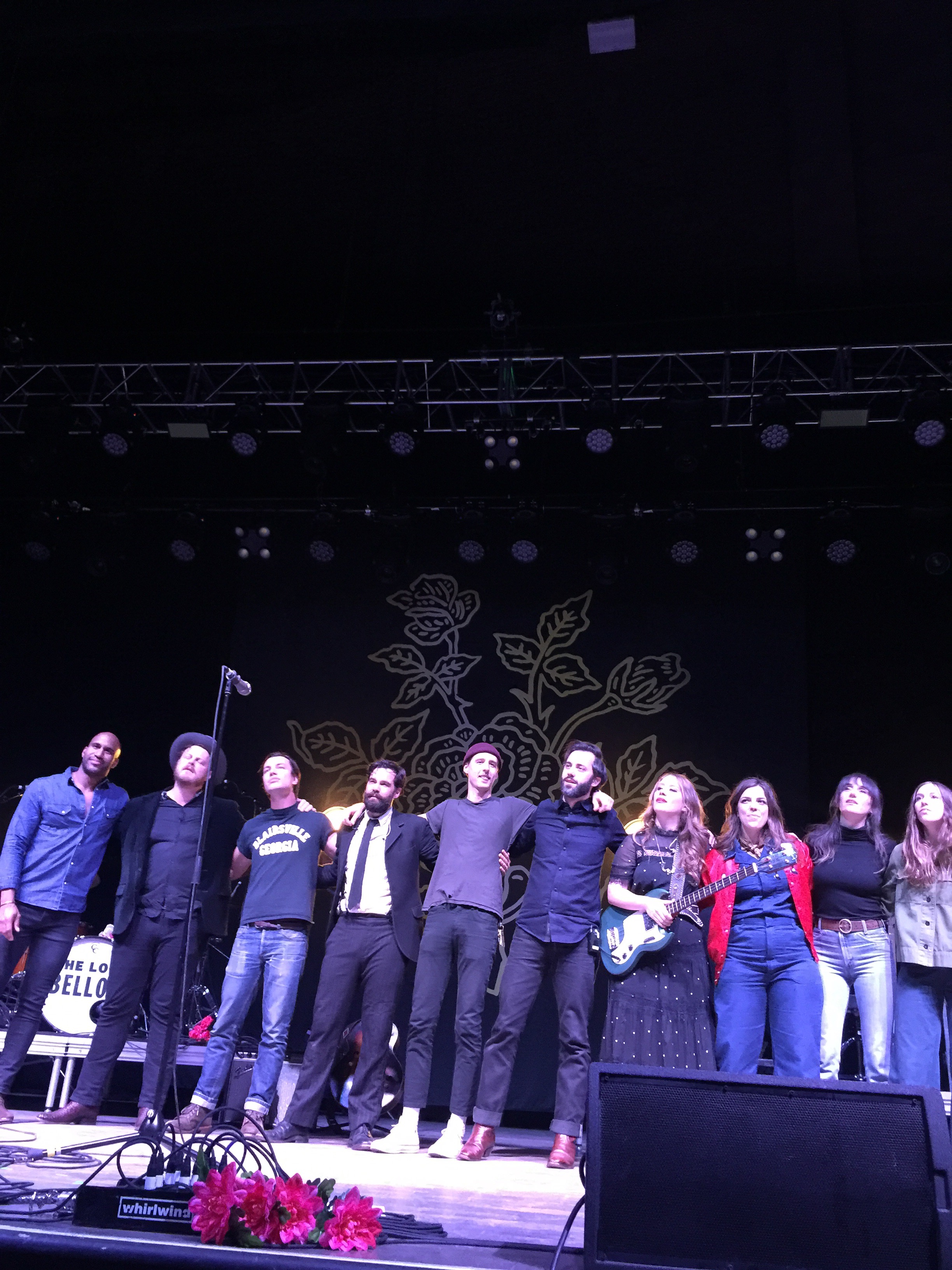 I think they wrapped up a 15 or so song set with “May You Be Well,” which has such hopeful lyrics–”Whatever darkness/That you are concerned with/May you find peace/That is everlasting/Even when circumstances/They are crashing/Oh you can stand firm on the everlasting/May you be well.” It’s a lovely sentiment to end a show with, but The Lone Bellow came back for two more songs, “Tree to Grow” and “Green Eyes and Heart of Gold.” It really lifted my spirit to hear these three songs back to back. “Tree to Grow” is a top favorite Lone Bellow song, will the reassuring refrain “I’ll never leave, I’ll always stay/I swear on all that I keep safe.” I loved singing that line with them. Zach, Brian, and Kanene unplugged and climbed off stage and sang “Green Eyes and Heart of Gold” from the floor. I don’t think there’s a better feeling than hearing your favorite band sing “Our song is not a dying dream/You’re not alone, you’re not alone” at the end of a heartfelt night of connection through song. I love them so much, and if you still don’t know them, I know you would, too.